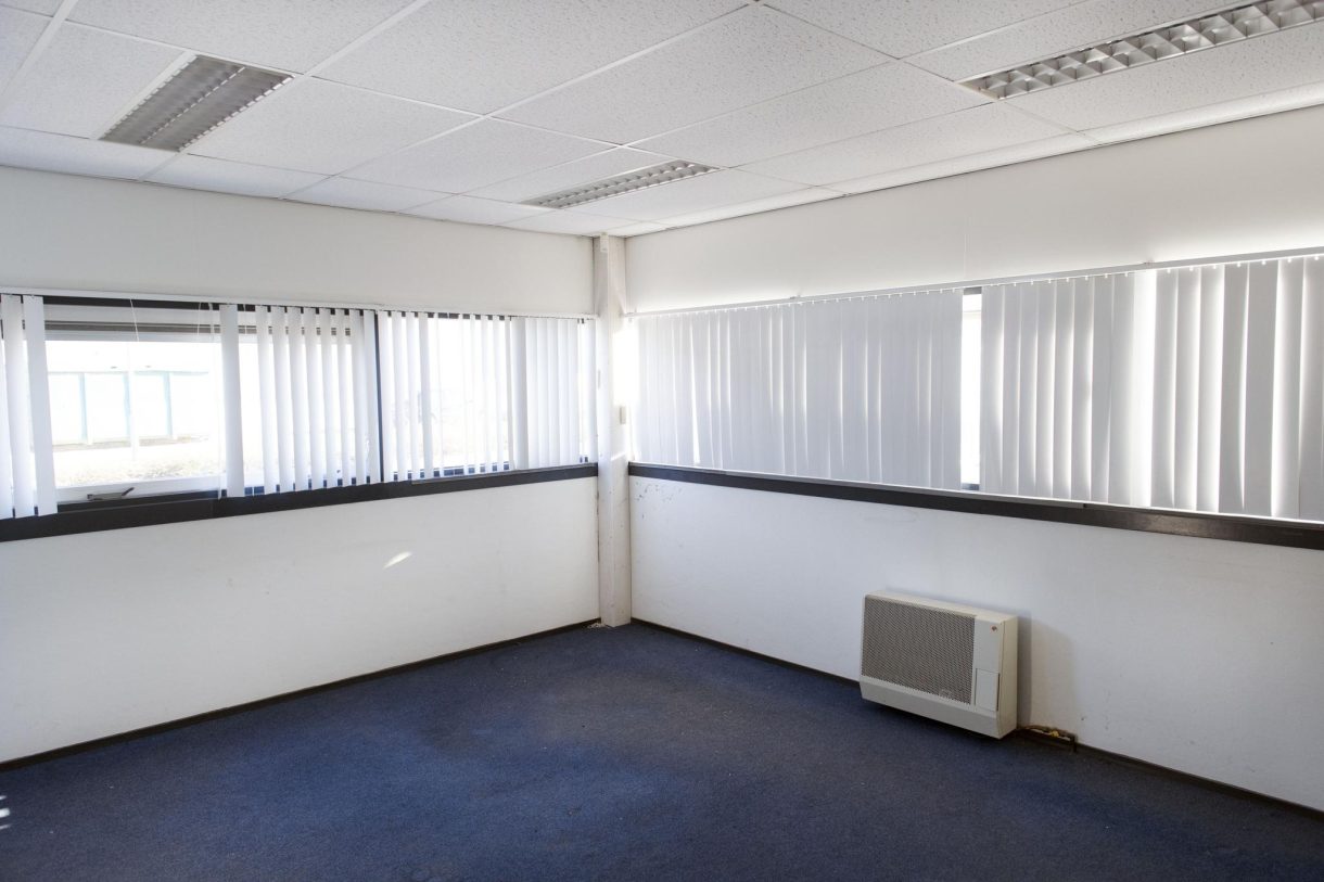 Kantoor v.v. gaskachel, systeemplafonds met verlichting, pantry.