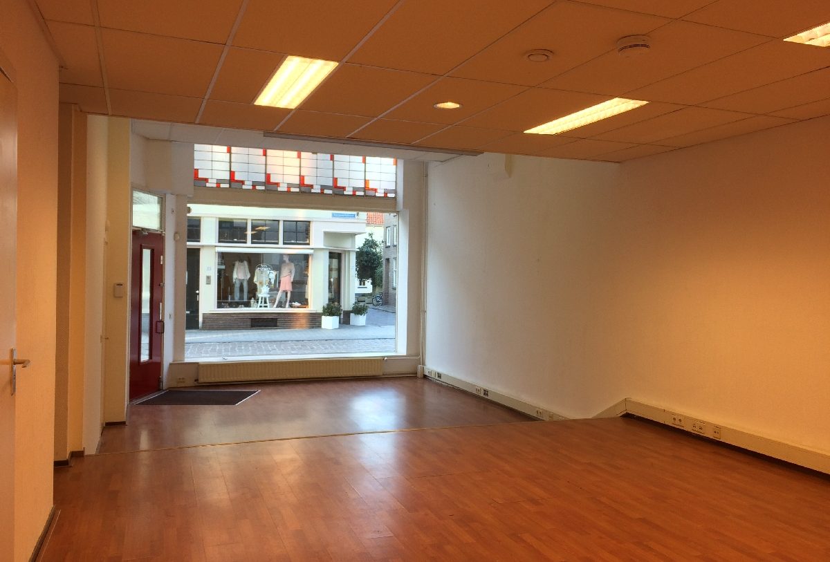 Te huur in het historische centrum van Zutphen een mooie royale winkel- of praktijkruimte, of dienstverlenend bedrijf, dichtbij de markt en bij de IJssel.