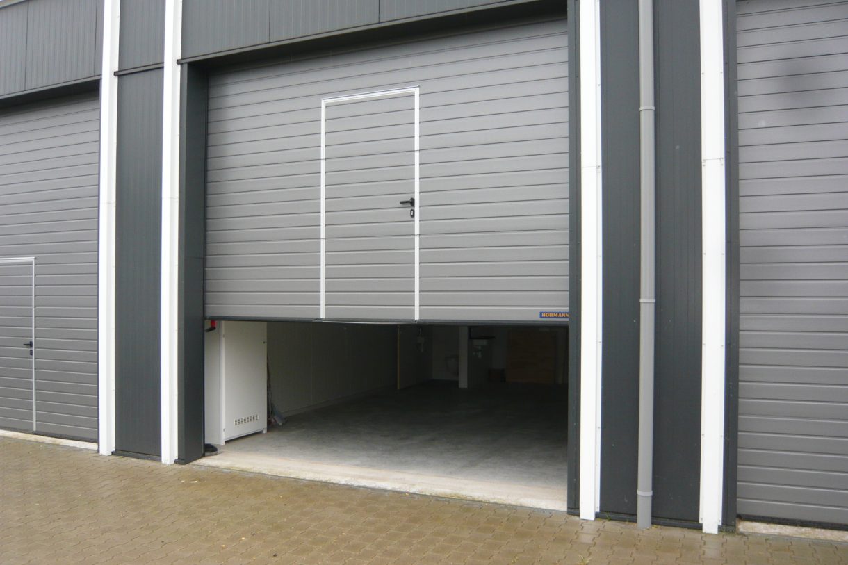 Toegang tot de panden wordt verkregen door middel van een elektrisch bedienbare overhead deur .