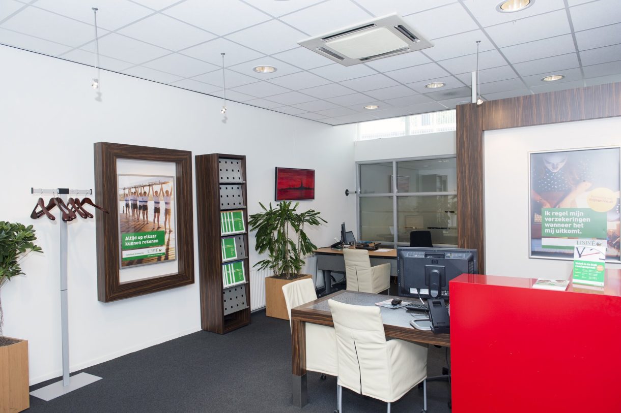 Het betreft een grote, moderne ruimte met veel lichtinval.