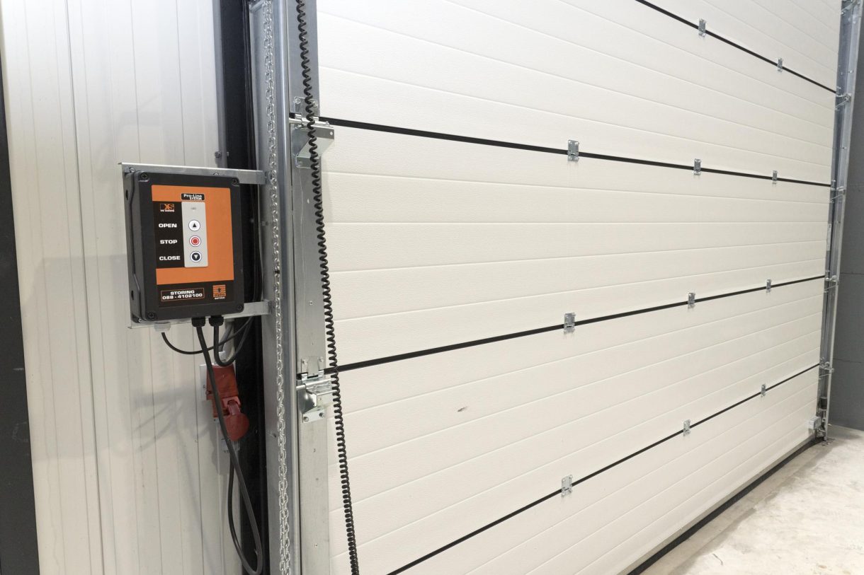 – elektrisch bedienbare roldeur van 330 hoog bij 400 cm breed.