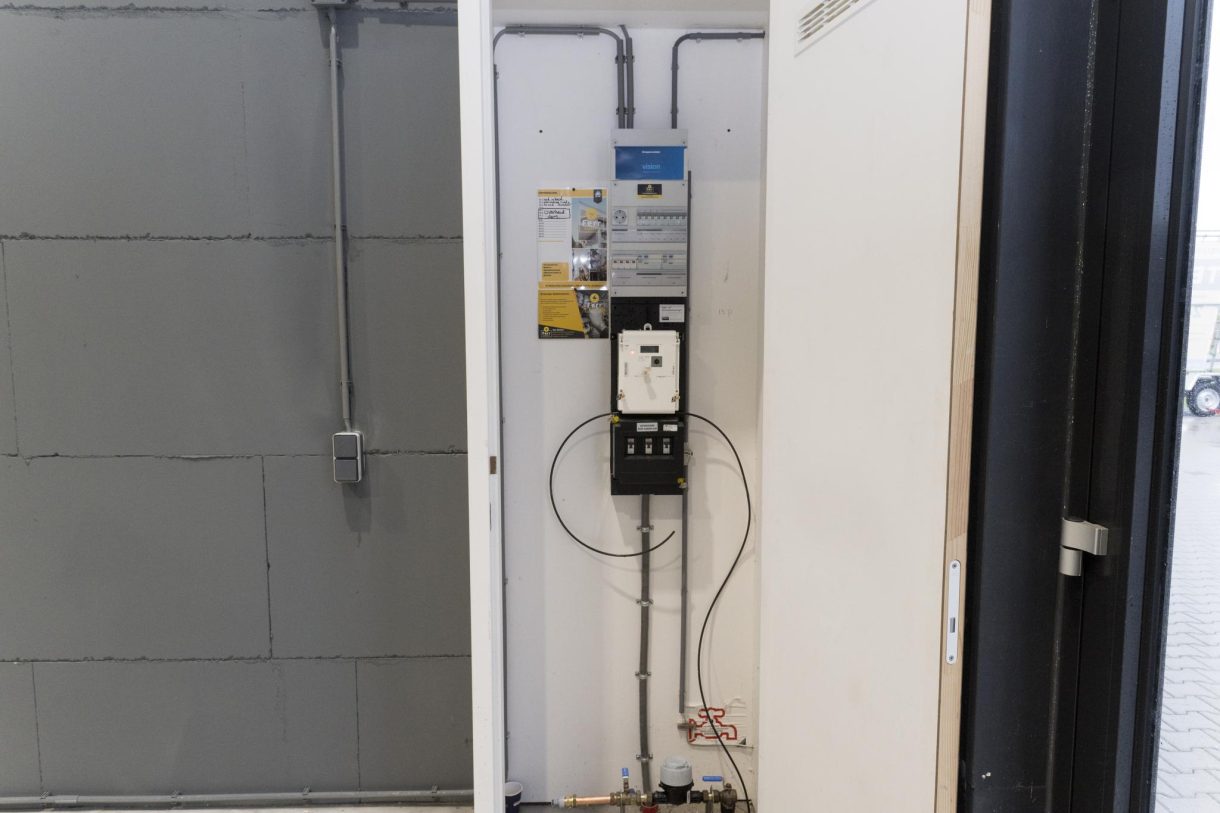 De elektrische roldeur is ca. 400 cm breed en 330 cm hoog.