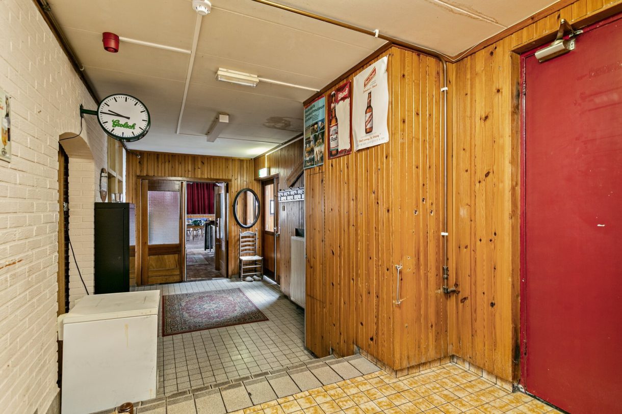 Via het terras aan de voorzijde kom je bij de entree van het café/restaurant. Aan de linkerkant is de grote eetzaal met een trap naar de bovenverdieping en de toegang tot de aangrenzende bedrijfskeuken. Aan de rechterzijde is het café met een karakteristieke bar en het biljart. Tussen het café en de eetzaal zijn het heren- en damestoilet met een portaal.