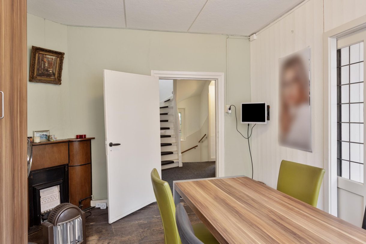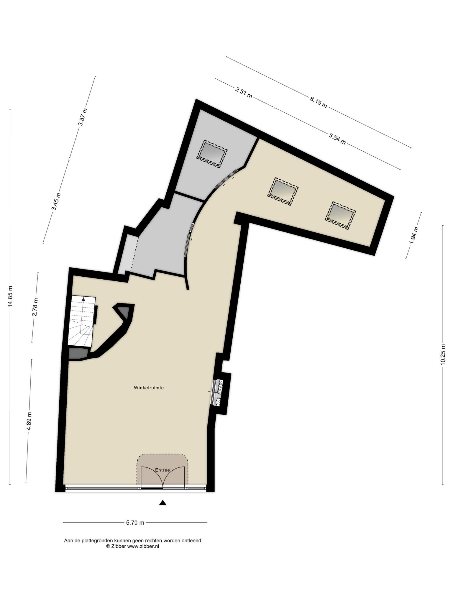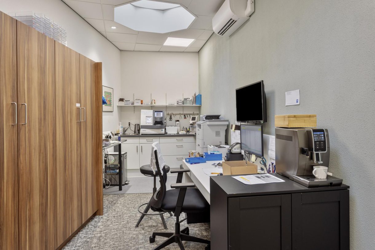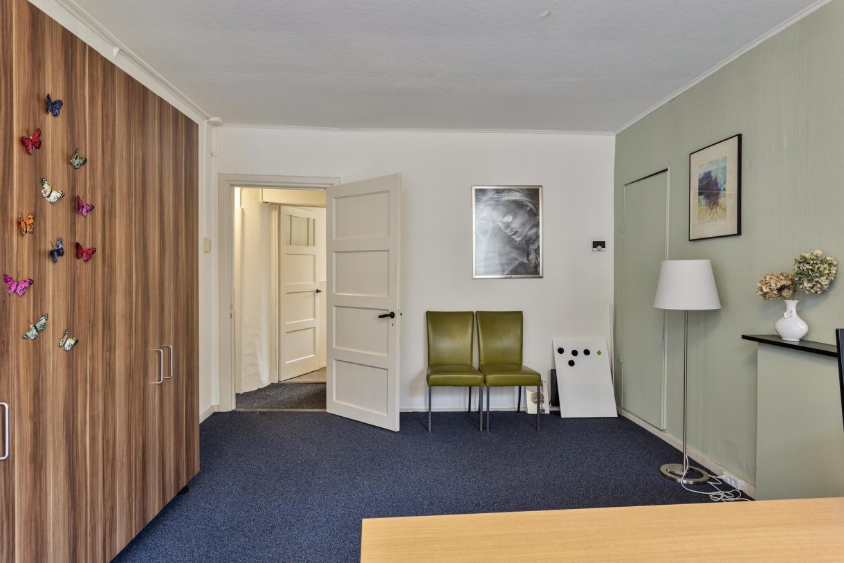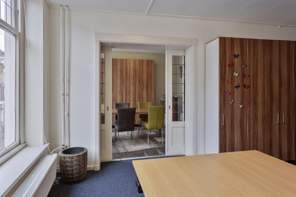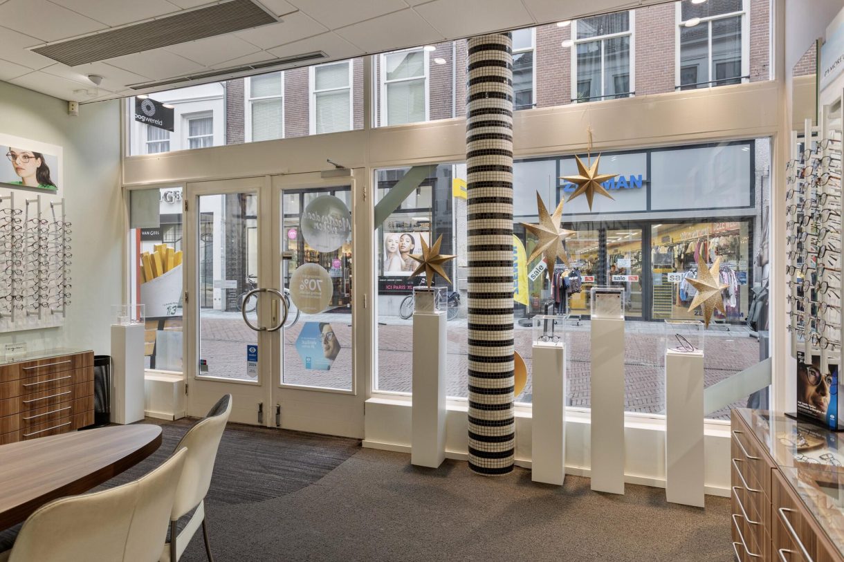 De L-vormige winkelruimte heeft een frontbreedte van circa 5.70 meter en een mooie L-vorm, waardoor er meer ruimte is dan de buitenzijde doet vermoeden. Rechts in de winkelruimte is de meterkast en aan de linkerzijde, achter de gebogen muur, zijn de trappen naar de eerste verdieping en de kelder. Er zijn twee spreek- of behandelkamers ingericht. Drie lichtkoepels zorgen voor lichtinval in het achterste gedeelte van de winkelruimte onder het platte dak, dat in 2024 vernieuwd is.