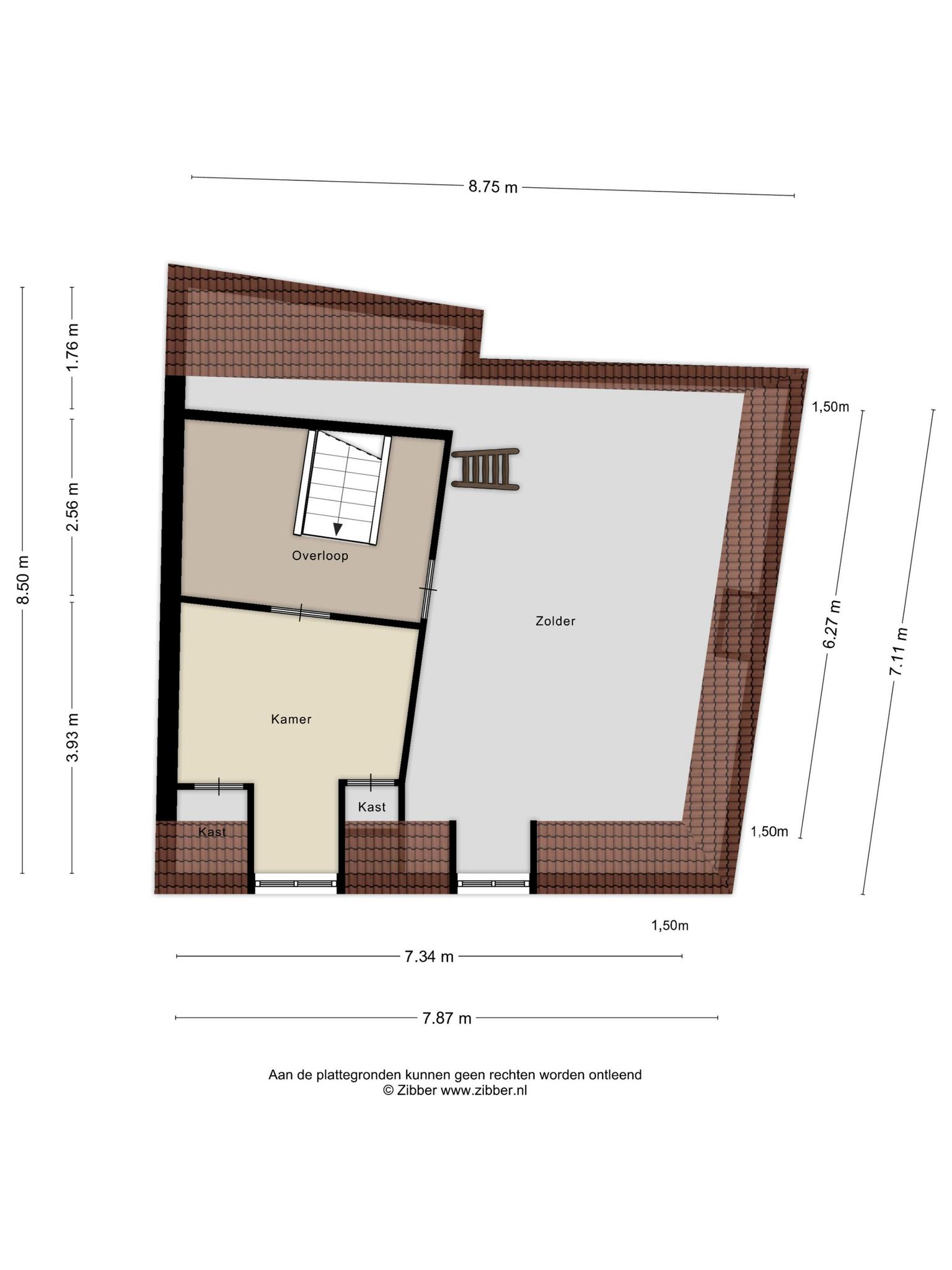 Achter een van de deuren op de overloop is een trap naar de zolder, die toegang geeft tot een kamer met dakkapel aan de voorzijde en een zolderruimte. Oude gebinten, daksporen en het hijsrad zijn het toonbeeld van karakter en historie.