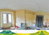 De bordestrap gaat verder naar de tweede verdieping, waar drie (voormalige slaap-)kamers wachten op een nieuwe invulling. Dubbele deuren in de kamer aan de achterzijde geven toegang tot het platte dak.