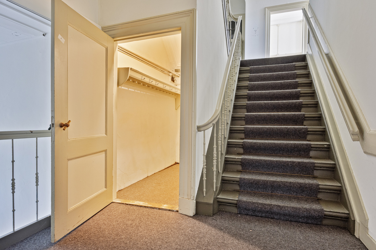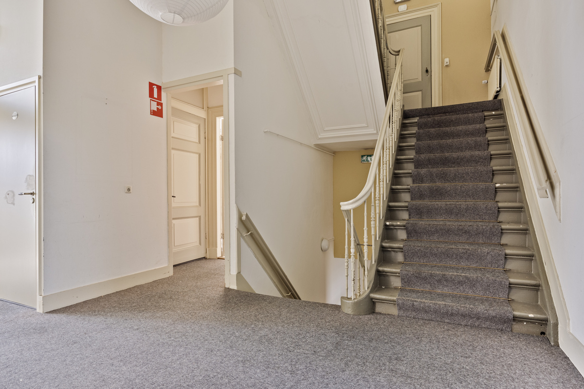 Op toplocatie het zeer grote bovenhuis (vrij van huur en gebruik) met zelfstandige hoofdentree en trappenhuis met een KANS OP TRANSFORMATIE naar 5 of misschien 6 Woonappartementen op de verdiepingen nu nog plaatselijk bekend als appartementsrecht met huisnummer 9a :