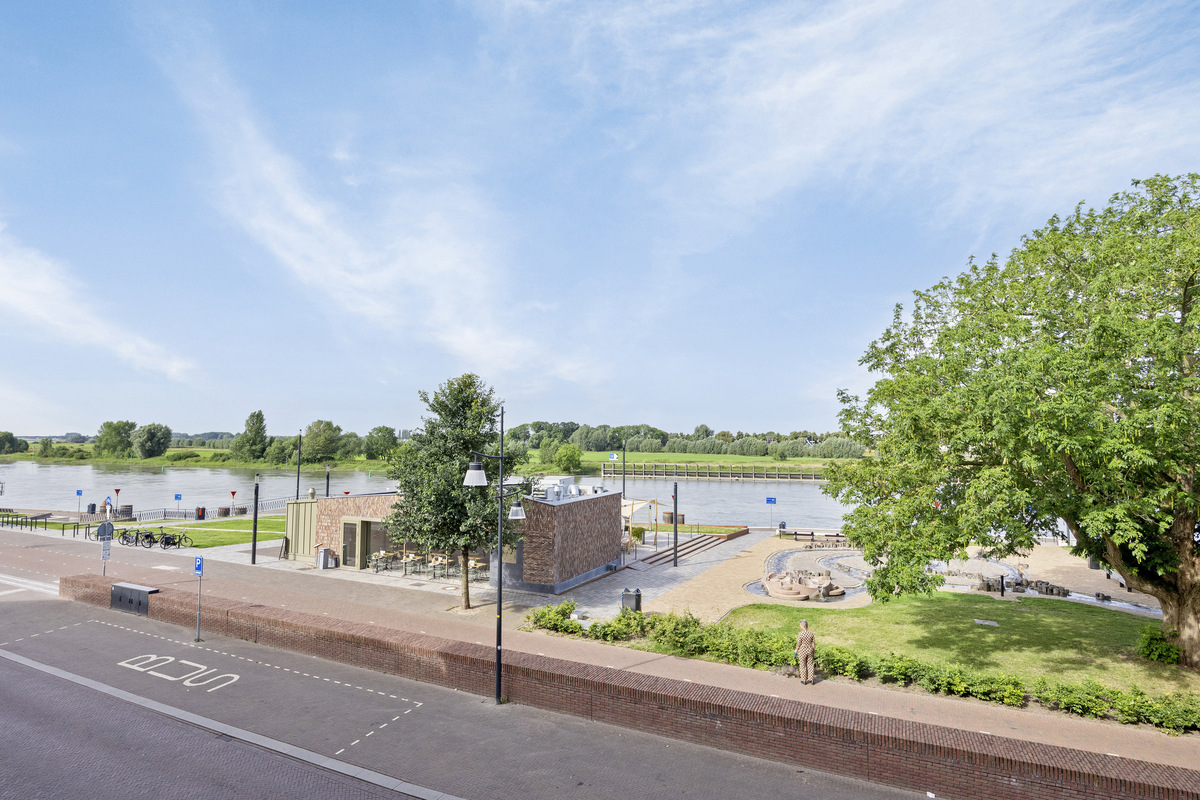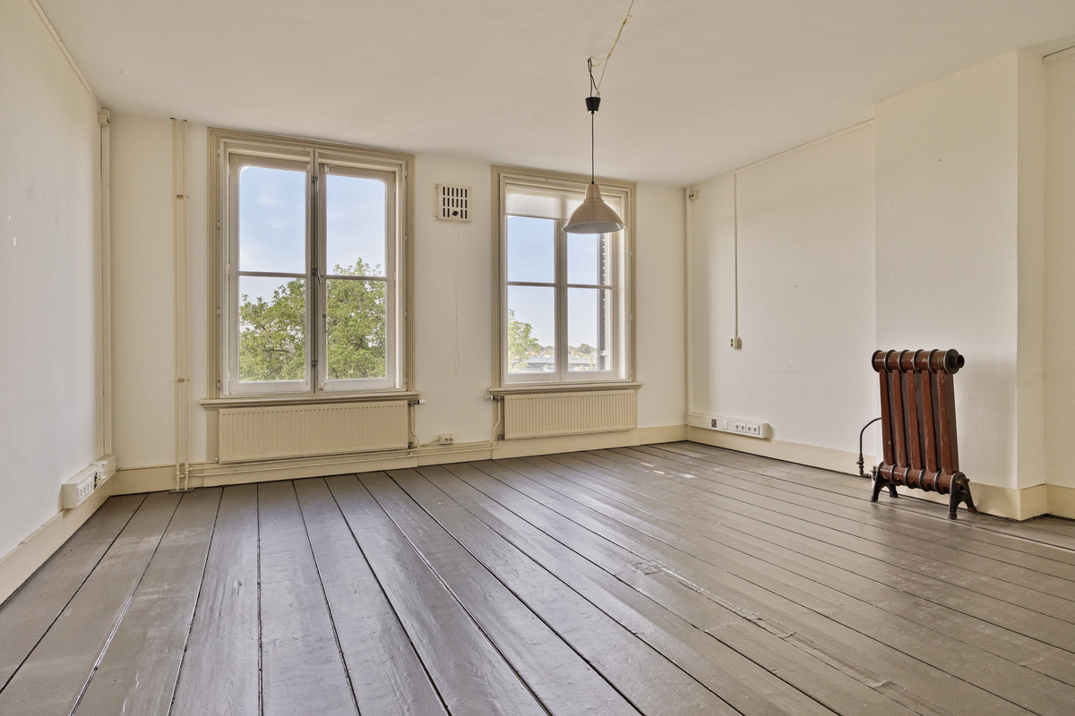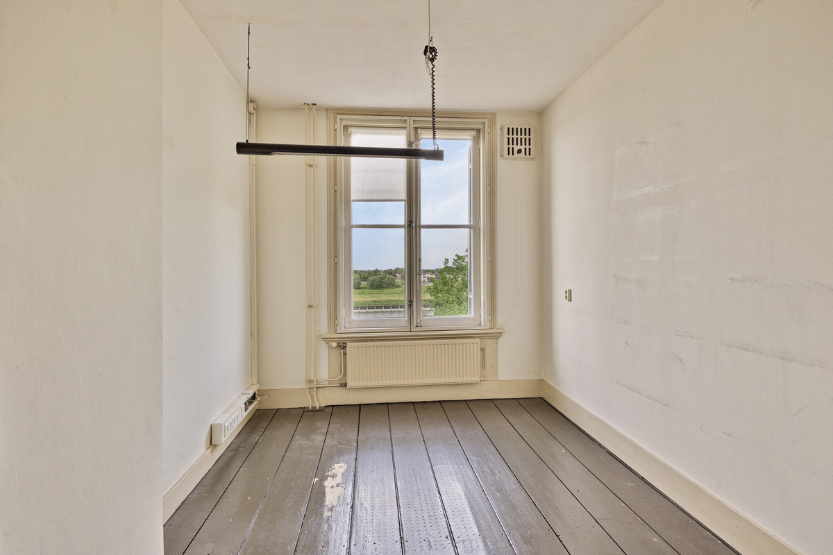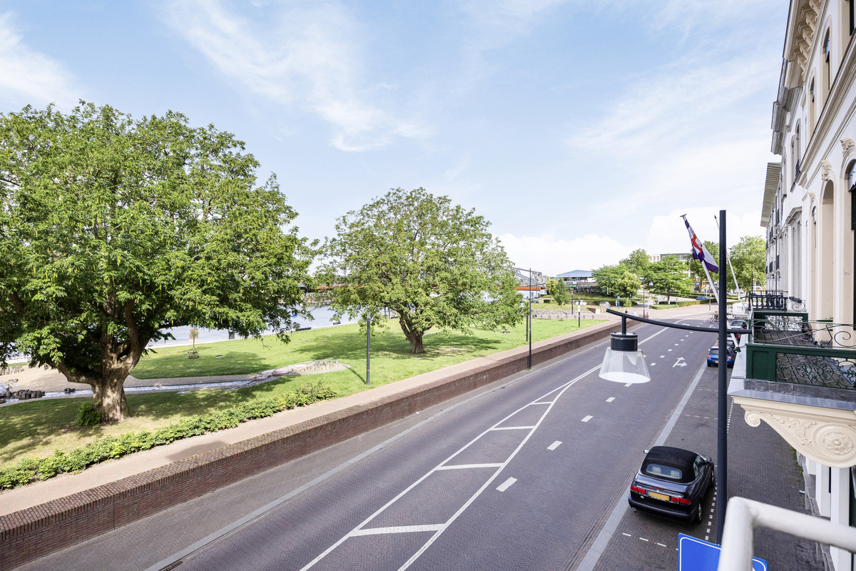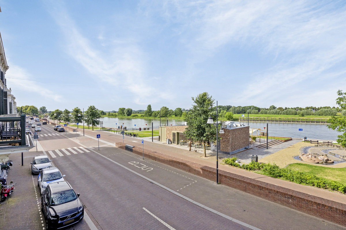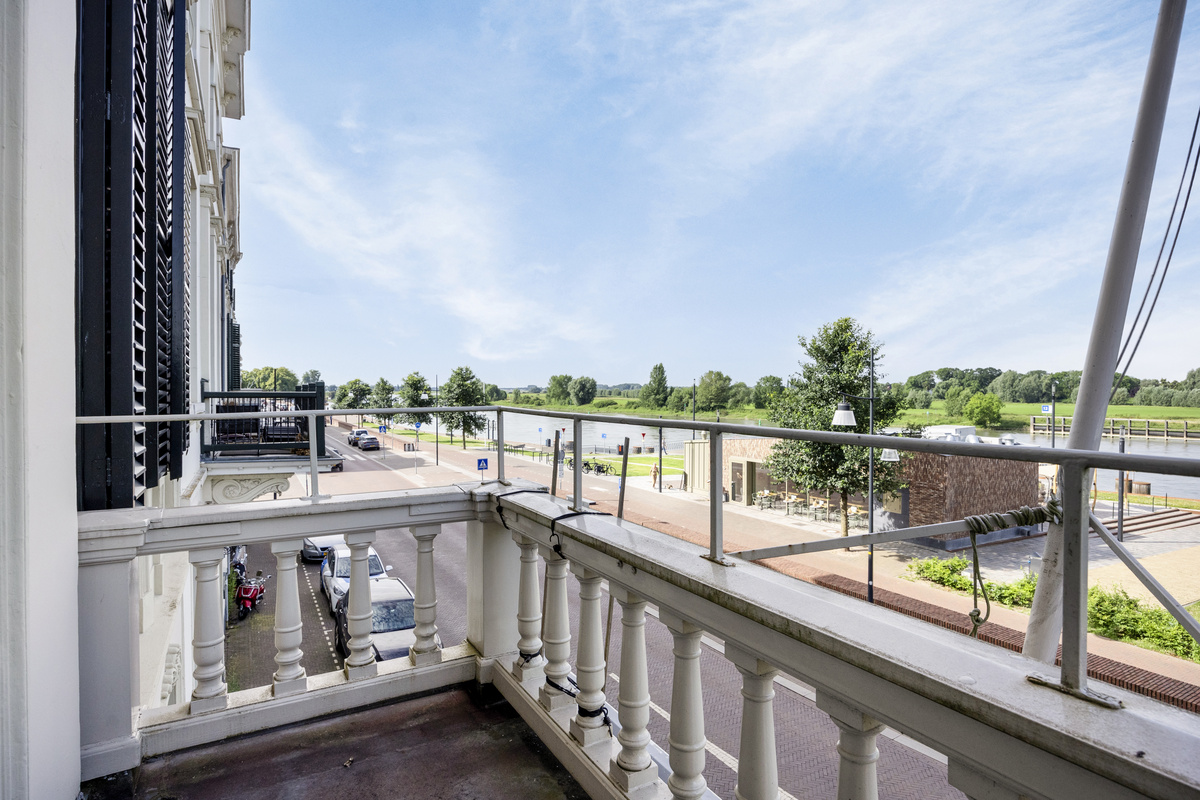 Eerste verdieping voorzijde aan de IJssel: ca. 160 m2 , tussenbordes met garderobe, entree, grote kantoorkamer met schouw, hoge schuiframen met voorzetramen, stucplafond, parketvloer, groot balkon aan voorzijde, schuifdeur naar tweede kantoorkamer met vensterbanken, achterkamer, dubbele toiletgroep, kantoorkamer met vaste kast en pantry, terras.