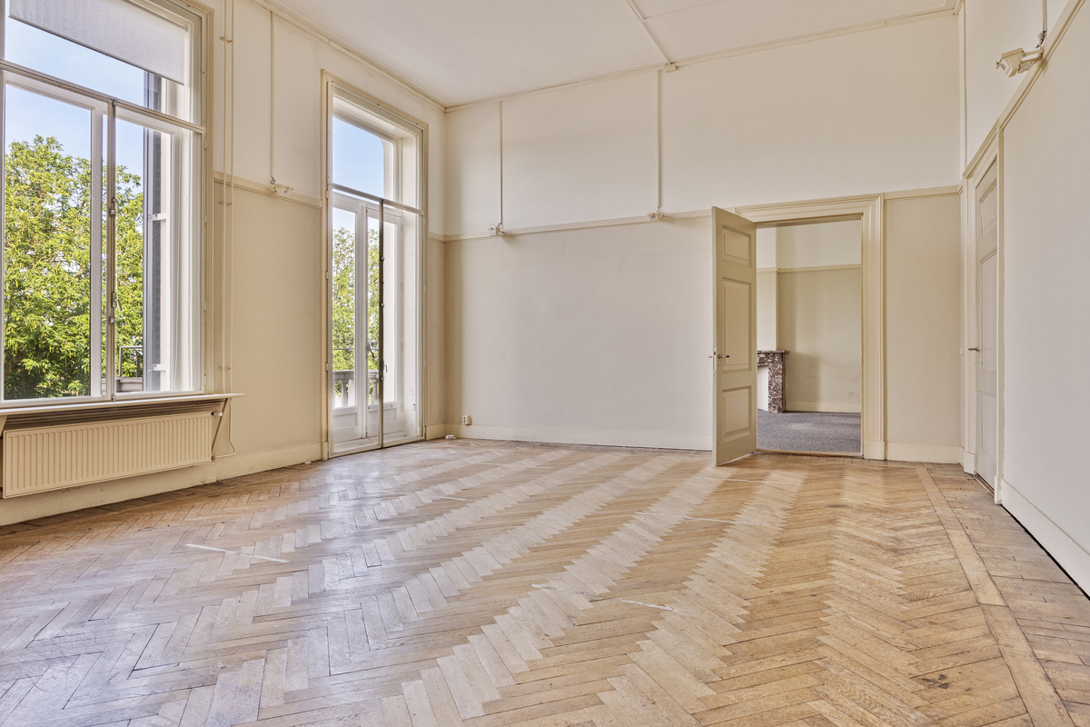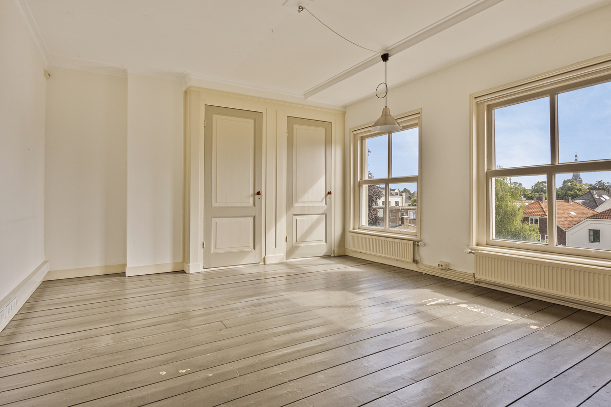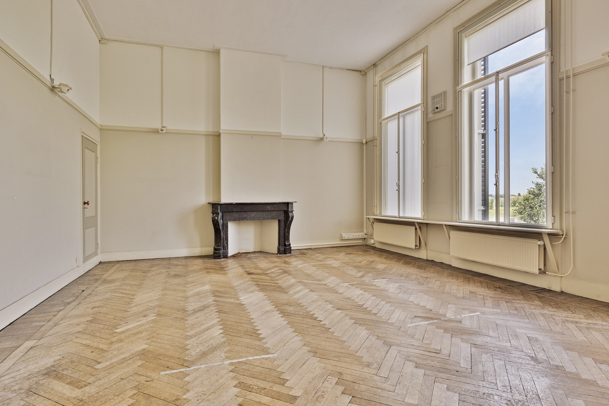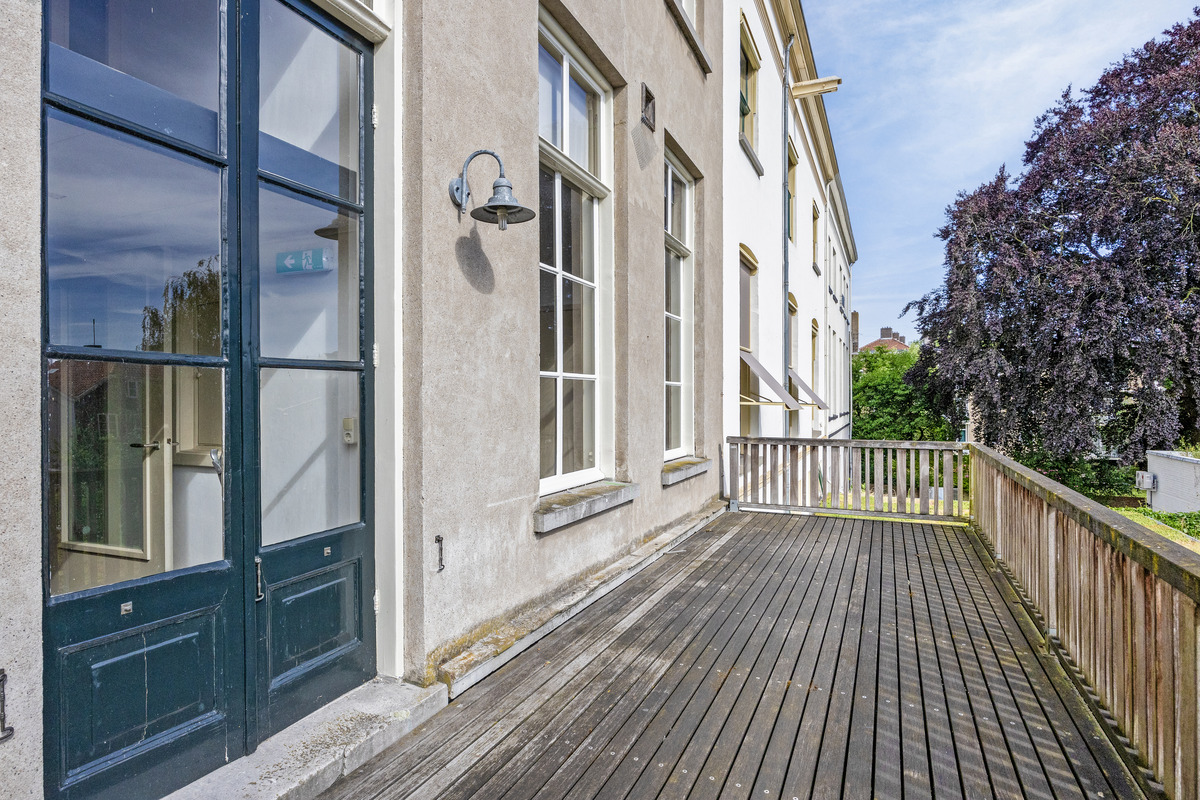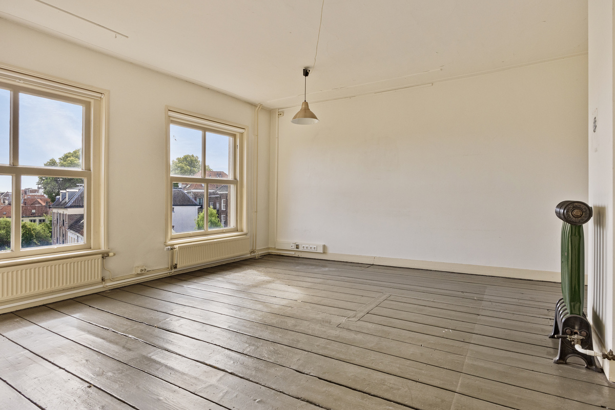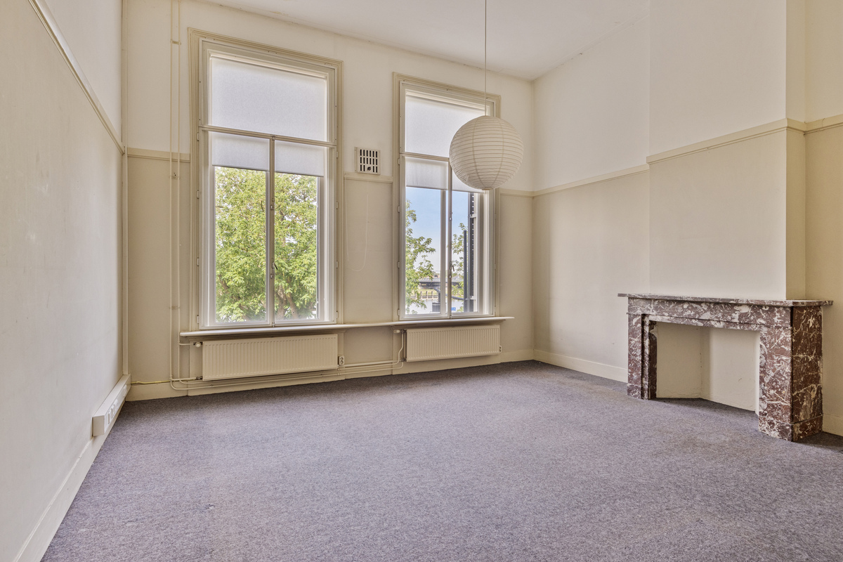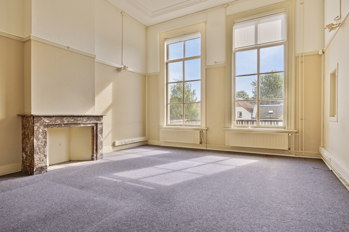 Eerste verdieping voorzijde aan de IJssel: ca. 160 m2 , tussenbordes met garderobe, entree, grote kantoorkamer met schouw, hoge schuiframen met voorzetramen, stucplafond, parketvloer, groot balkon aan voorzijde, schuifdeur naar tweede kantoorkamer met vensterbanken, achterkamer, dubbele toiletgroep, kantoorkamer met vaste kast en pantry, terras.