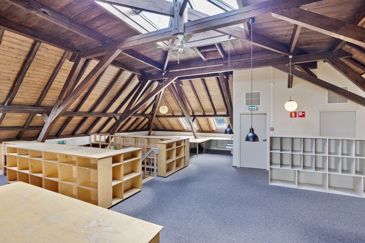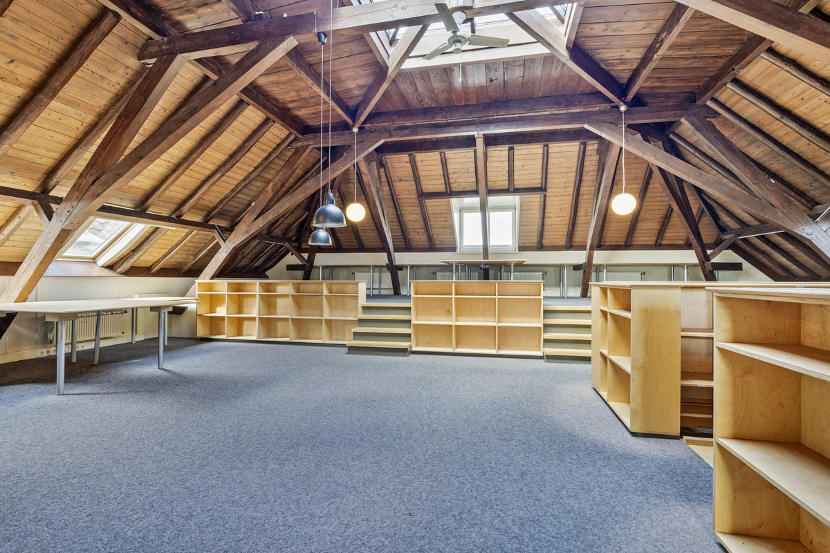 Derde verdieping; ca. 106 m2 grote open ruimte met lichtkoepel, dakramen en dakkapel, en technische ruimte met opstelling c.v. ketel.