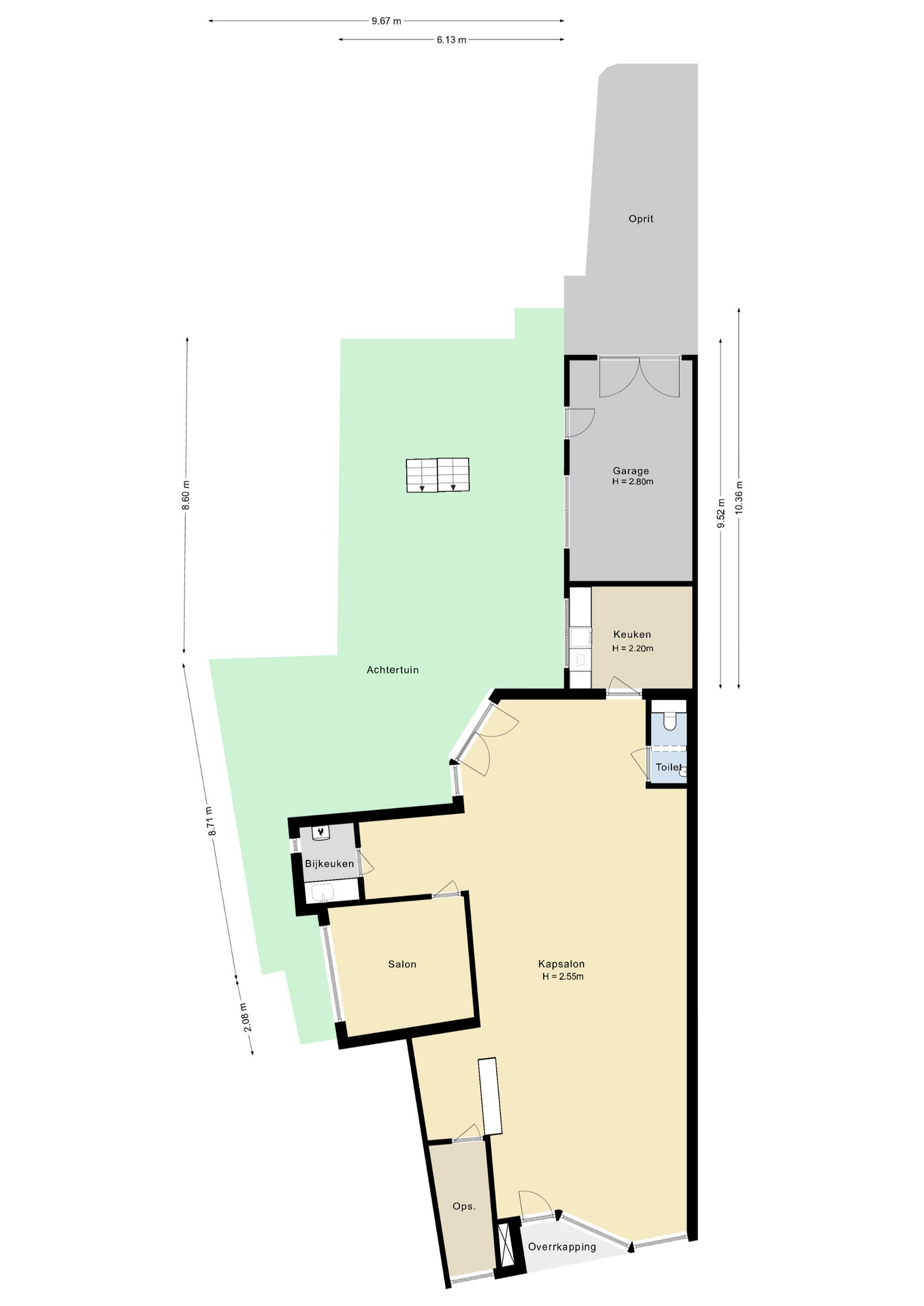 De bedrijfs-/winkelruimte, in gebruik als kapsalon, heeft een eigen entree. Met een bruto vloeroppervlakte van circa 163 m2 is dit een zeer royale ruimte, die smaakvol is verbouwd tot een representatieve commerciële ruimte. Aan de linkerzijde zijn de balie met kassa, een aparte privésalon, een opslagruimte en een pantry. In het achterste deel van de bedrijfs-/winkelruimte zijn een toiletruimte, de keuken/kantine . Eigen c.v HR ketel Remeha oktober 2024, eigendom en een boiler.