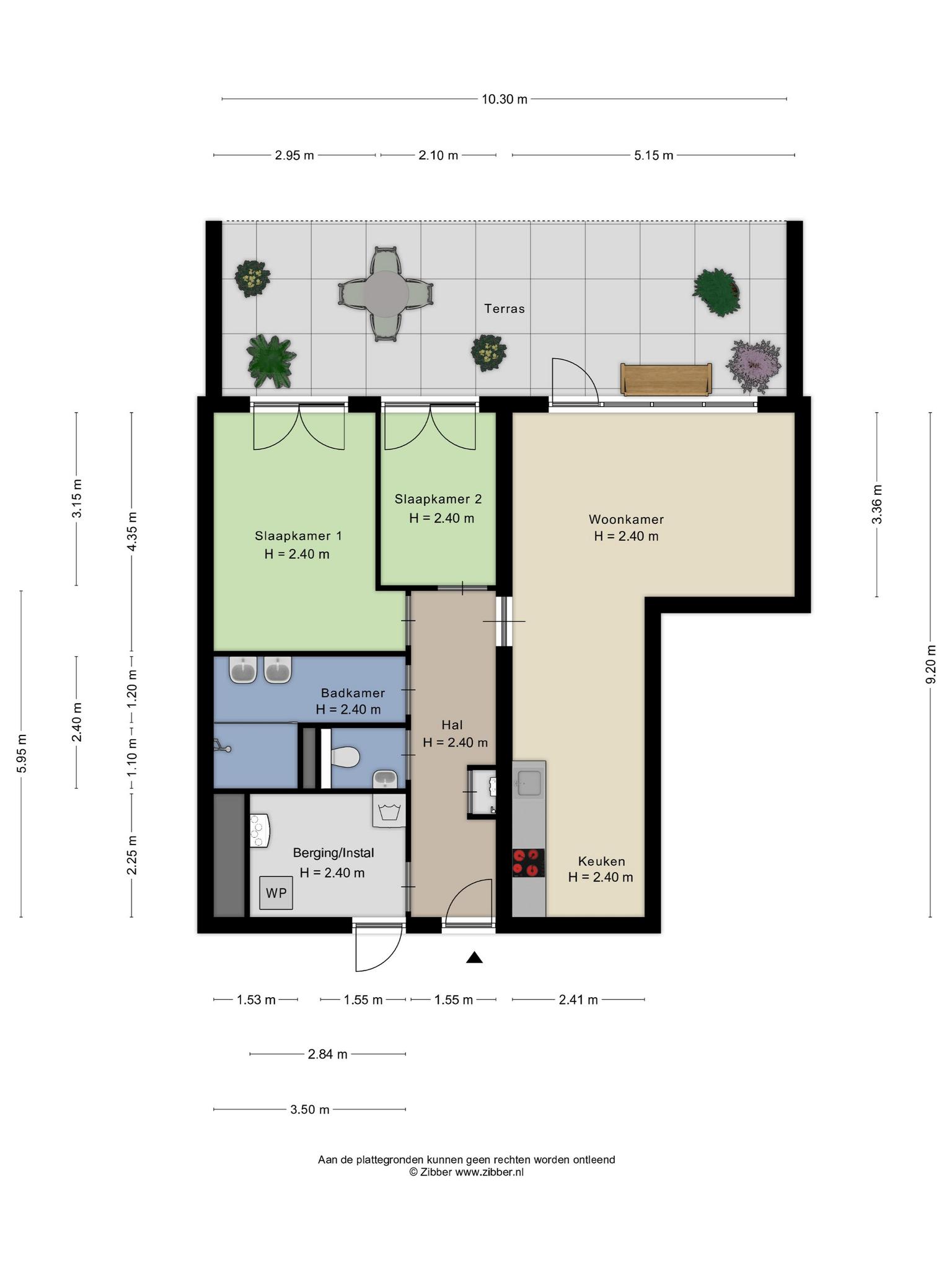 – 23 appartementen met woonkamer & keuken, 2 slaapkamers, balkon/terras/dakterras grenst en kijkt uit op de parktuin (Zuid).
