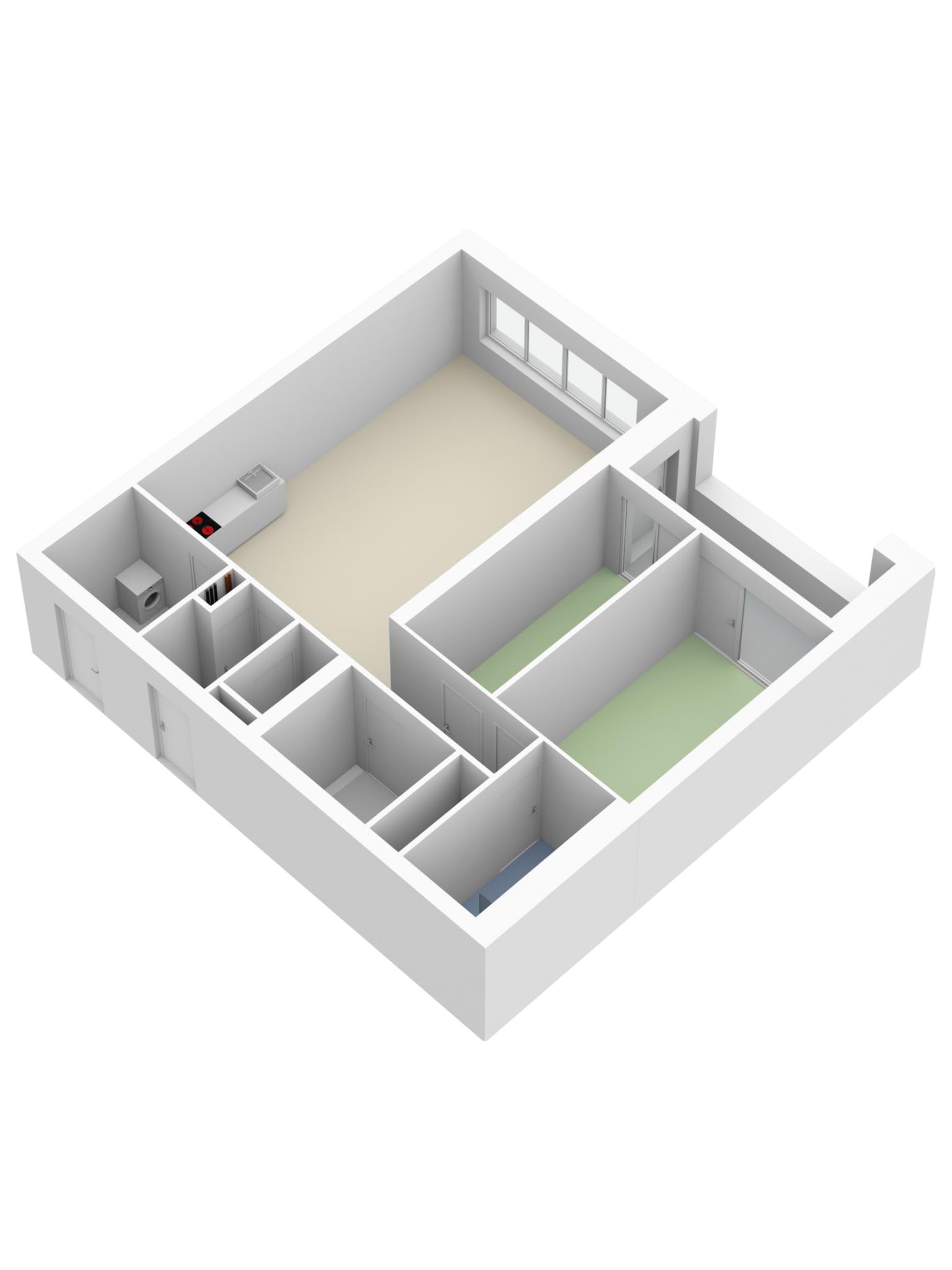 Nagenoeg alle 39 huurappartementen zijn 3-kamer appartementen met parkeerplaats in de parkeerkelder bestaande uit: