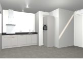 – De keuken beschikt over inbouwapparatuur van het merk AEG, zijnde een inductiekookplaat, heteluchtoven met magnetron, koelkast met vriesvak, vaatwasmachine en afzuigkap (recirculatie).