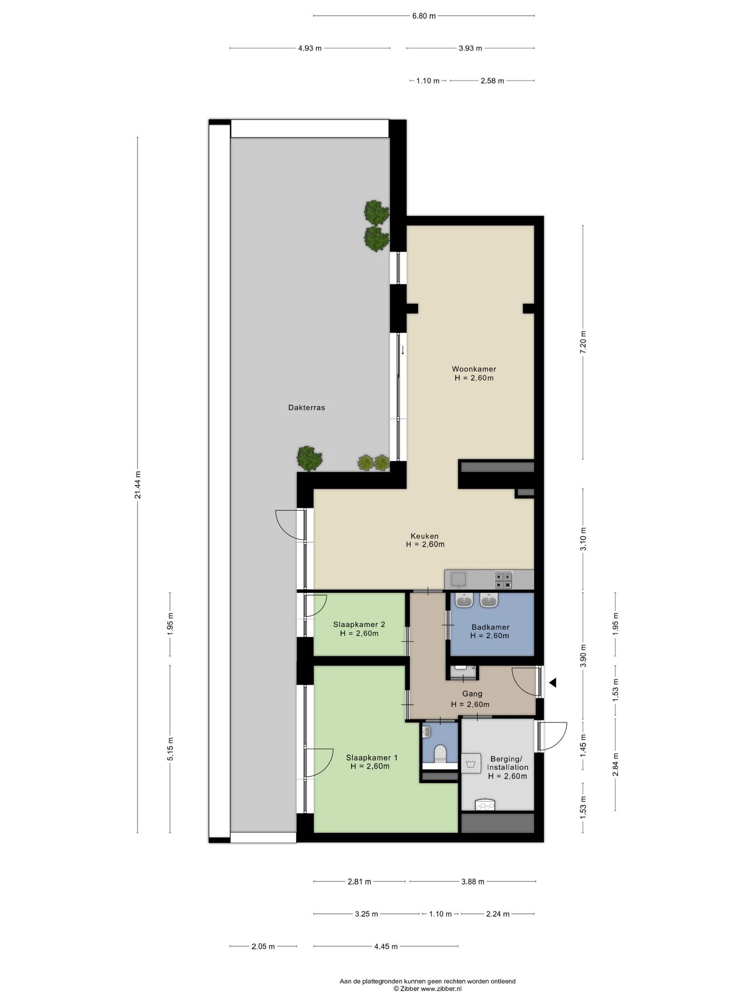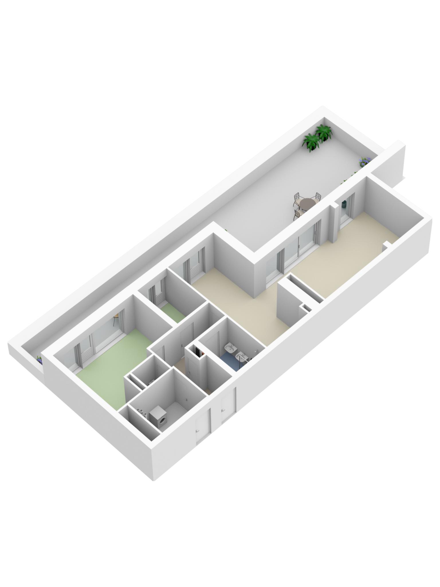 – 23 appartementen met woonkamer & keuken, 2 slaapkamers, balkon/terras/dakterras grenst en kijkt uit op de parktuin (Zuid).
