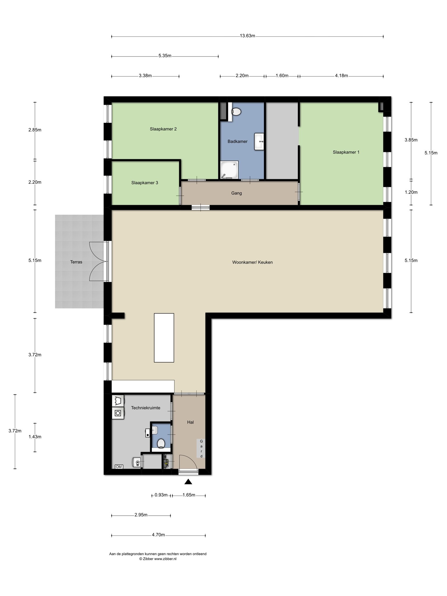 Indeling: entree, hal, toilet, technische ruimte, dubbele deuren naar woonkeuken, woonkamer van maar liefst 88 m2 met openslaande deuren naar het terras en hoge ramen aan de voorzijde met zicht op de haven, gang, drie slaapkamers waarvan 1 slaapkamer met inloopkast en badkamer.