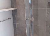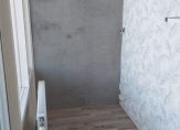 Overloop met toegang tot twee slaapkamers, waarvan één met met toegang tot het balkon en een badkamer voorzien van wastafel en douchecabine.