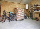Het linkerdeel van het bijgebouw is ingericht als berging/hobbyruimte met dubbele deuren, een vliering en een hoge nok. Hier bevindt zich tevens de 3e meterkast (voor het bijgebouw) en de grondwaterpomp.