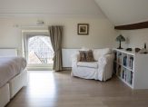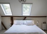 De ruime masterbedroom, ademt de sfeer van een hotelsuite, beschikt over grote elektrische dakramen met zonwering en verduisterende gordijnen met uitzicht op de tuin. De royale inloopkast zorgt voor extra comfort en luxe.