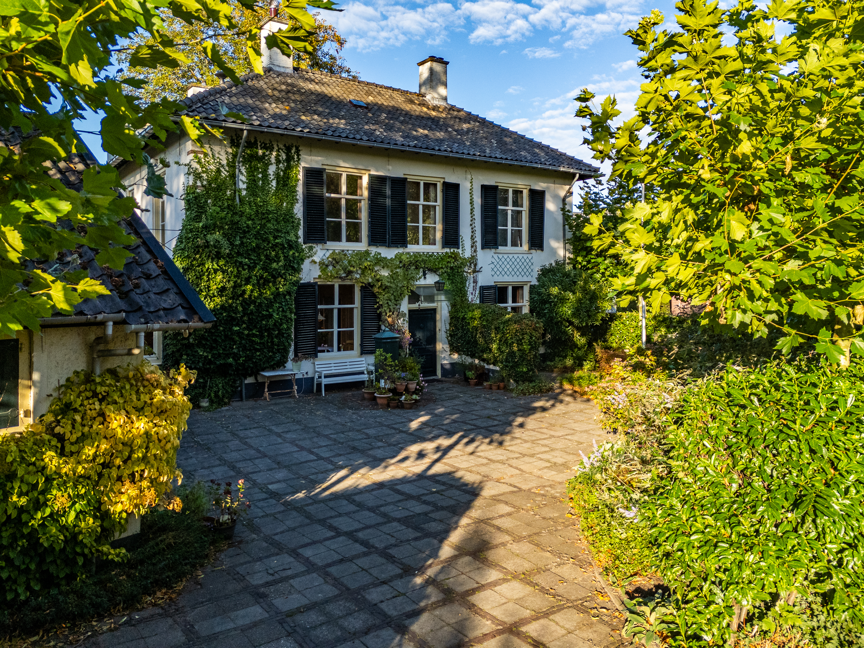 Dit prachtige woonhuis wordt aan drie kanten omringd door een tuin, boordevol sfeer en groen. Leibomen en groene hagen zorgen voor privacy en de nostalgische waterpomp is een van de elementen die direct de aandacht trekt. Boven de deur die richting de keuken leidt zie je een levensboom, die oorspronkelijk diende als symbolische bescherming van het huis en de bewoners.