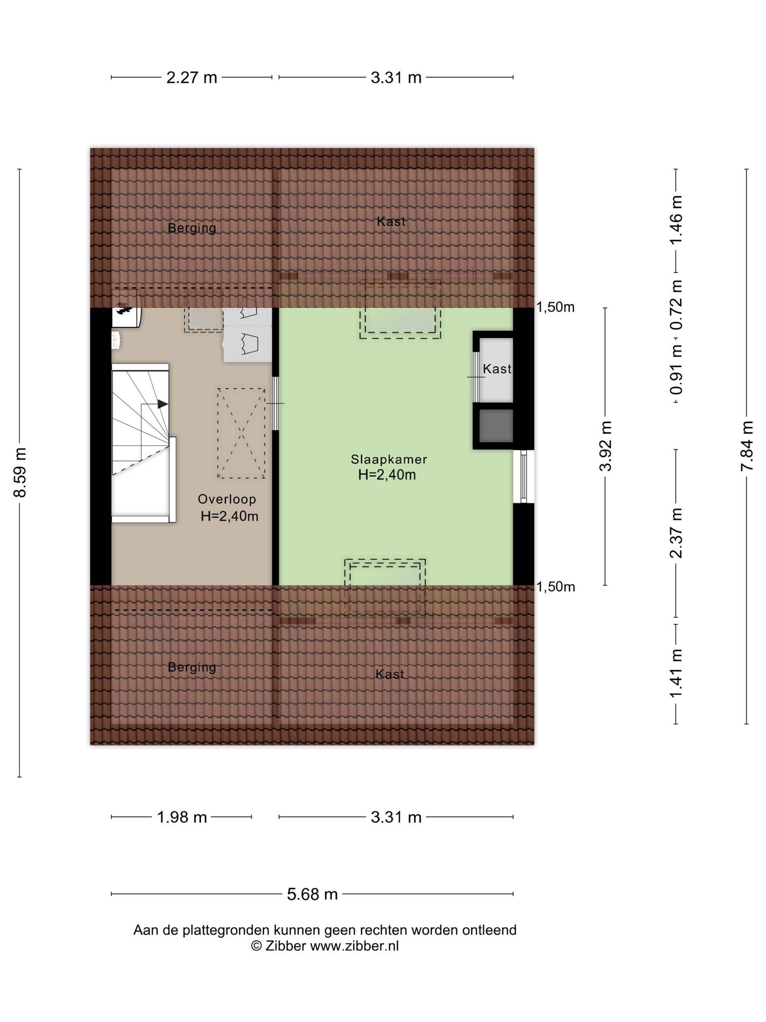 Een vaste trap geeft toegang tot de tweede verdieping, verdeeld in twee ruimtes. Als eerste is er een ruime overloop met de HR-ketel, ventilatieunit en de omvormer van de zonnepanelen. Ook is hier de opstelling van de wasmachine en droger. In de nok is een handige bergvliering met een nokhoogte van bijna 1 meter.