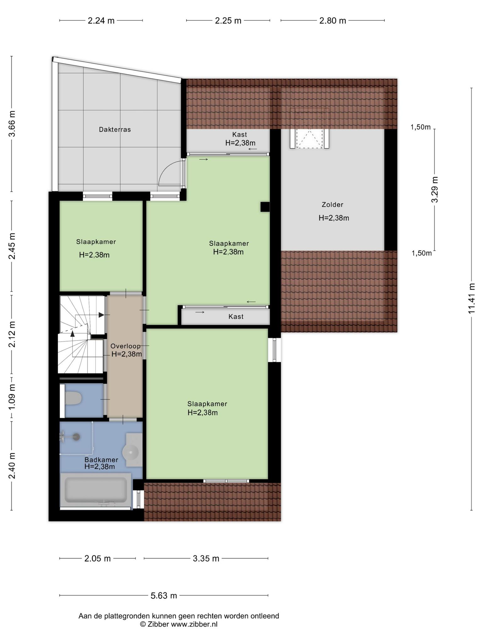 Op de eerste verdieping zijn drie slaapkamers, de badkamer, een aparte toiletruimte en het dakterras. Boven de garage is een ruime bergzolder die verbouwd kan worden tot werkkamer, hobbyruimte, kleedruimte of extra slaapkamer. Hiervoor kun je een doorbraak maken vanuit de grote slaapkamer aan de achterzijde. Deze kamer met vaste kasten, ingericht als hoofdslaapkamer, heeft een deur naar het dakterras.