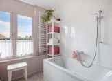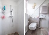 Wat vroeger de derde slaapkamer was, is verbouwd tot een badkamer met een ligbad en een wastafelmeubel. Aan de andere zijde van de overloop is de tweede badkamer, met een ruime douche en een toilet.