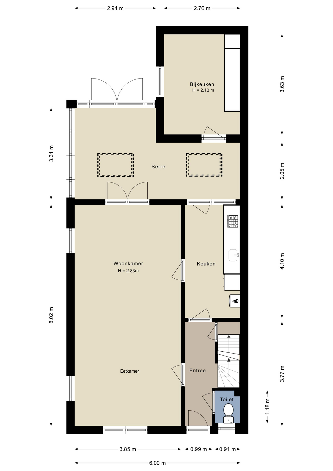 – Grote aanbouw aan de achterzijde (serre en bijkeuken);