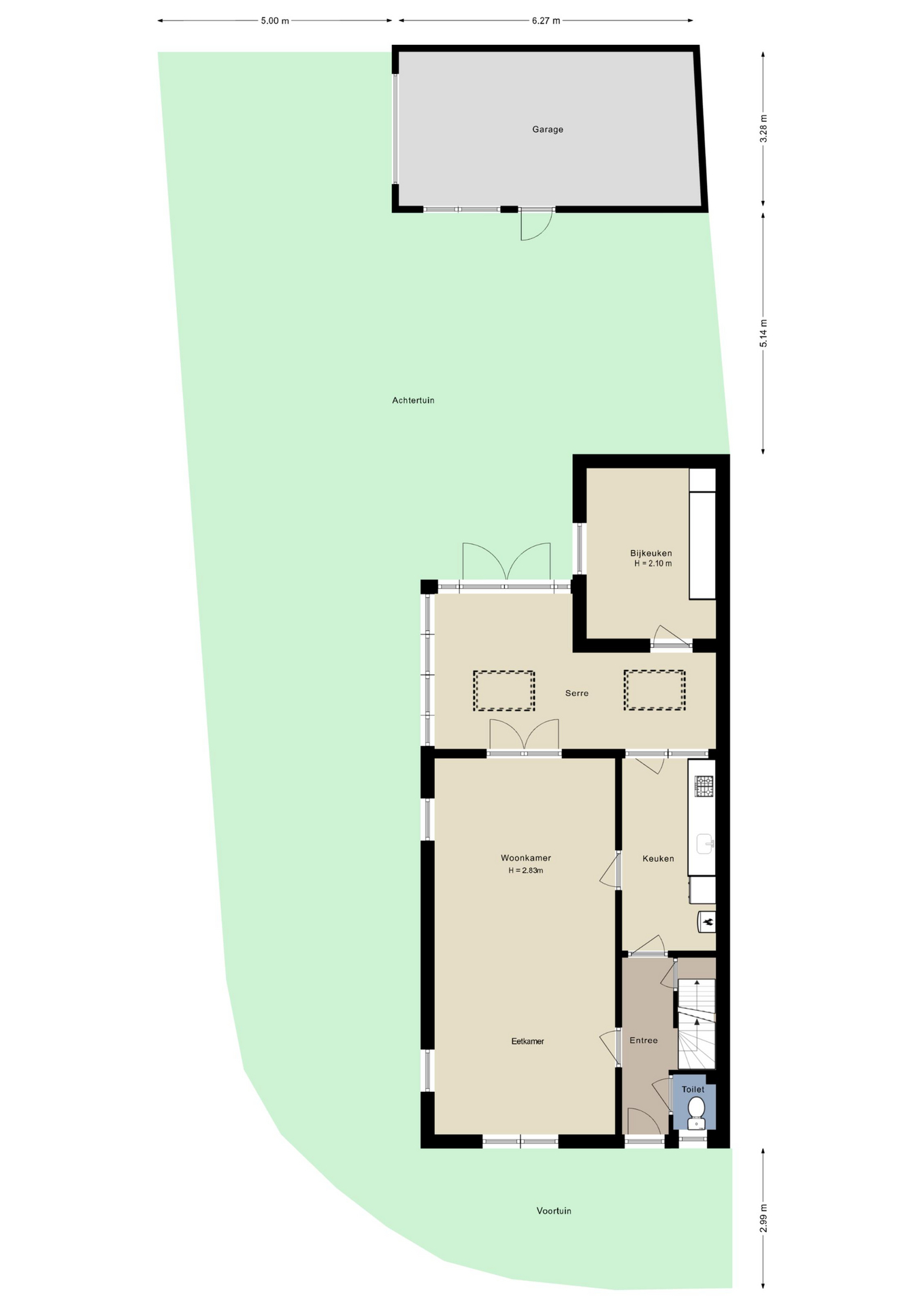 Een van de pluspunten van deze woning is de stenen garage met oprit, voor de auto en andere voertuigen. Wat je aan de buiten- en binnenzijde ziet, is dat de garage extra hoog is.