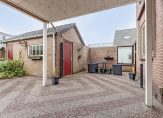 De mooi aangelegde voortuin met sierhekwerk geeft de woning een fraaie uitstraling. Aan de linkerzijde is de diepe oprit die leidt naar het bestrate buitenterrein voor de loods/garage. Er is sprake van een recht van overpad, waarover de makelaar meer kan vertellen.
