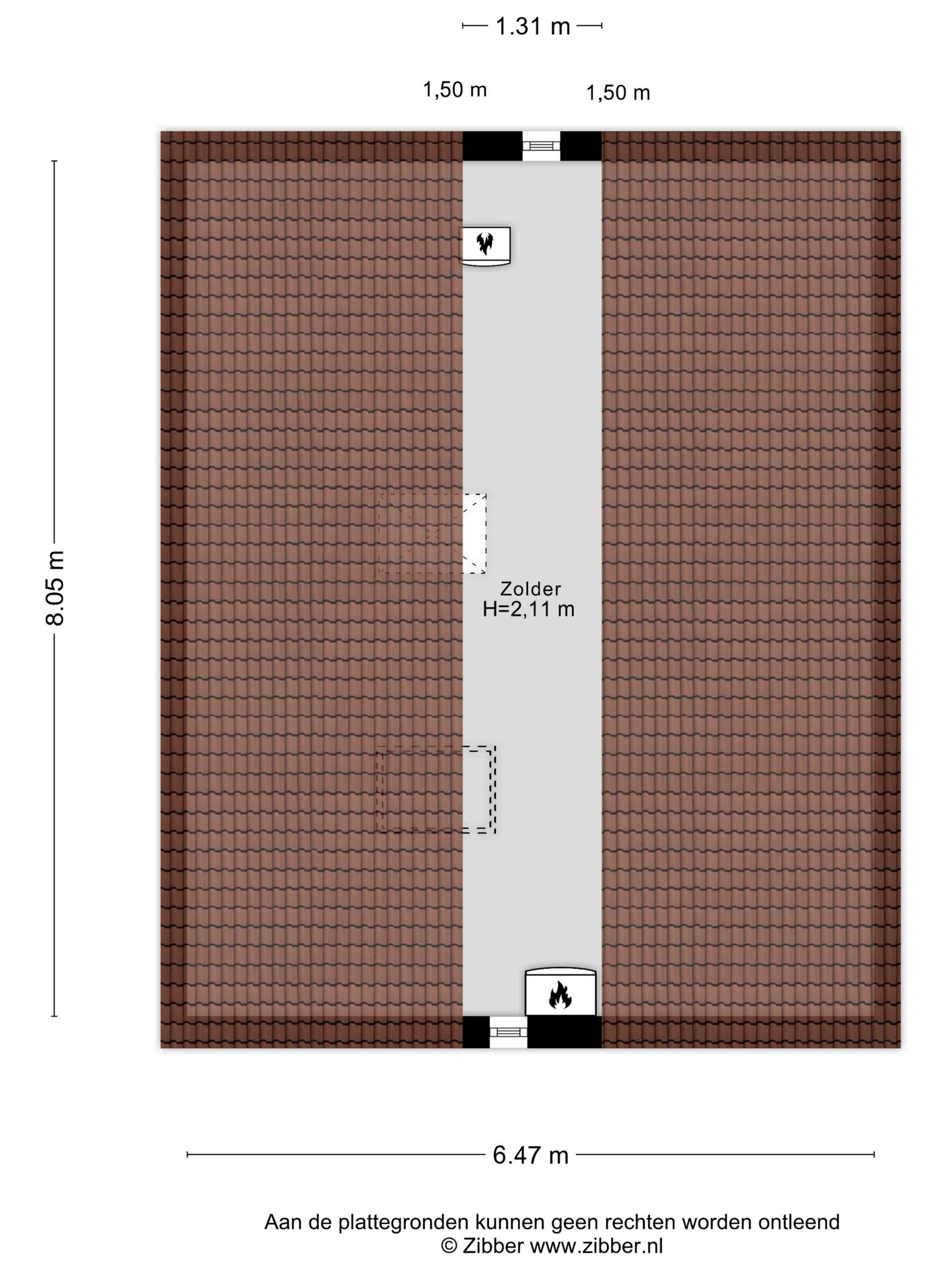 Op de overloop is een luik met trap naar de bergzolder, die een nokhoogte van 2.11 meter heeft. De zolder is voorzien van kleine gevelramen en een groot dakraam. Met het plaatsen van een dakkapel en een vaste trap is het realiseren van een extra (slaap)kamer mogelijk. Voor de dakkapel is nog geen vergunning aangevraagd.