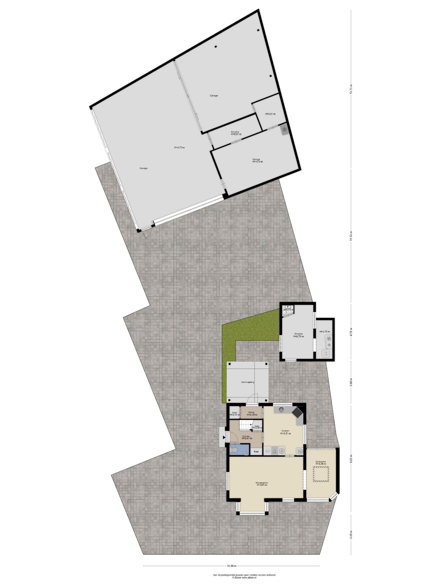 – Zeer ruime loods/garage (ca. 200 m2) met oprit en buitenterrein;
