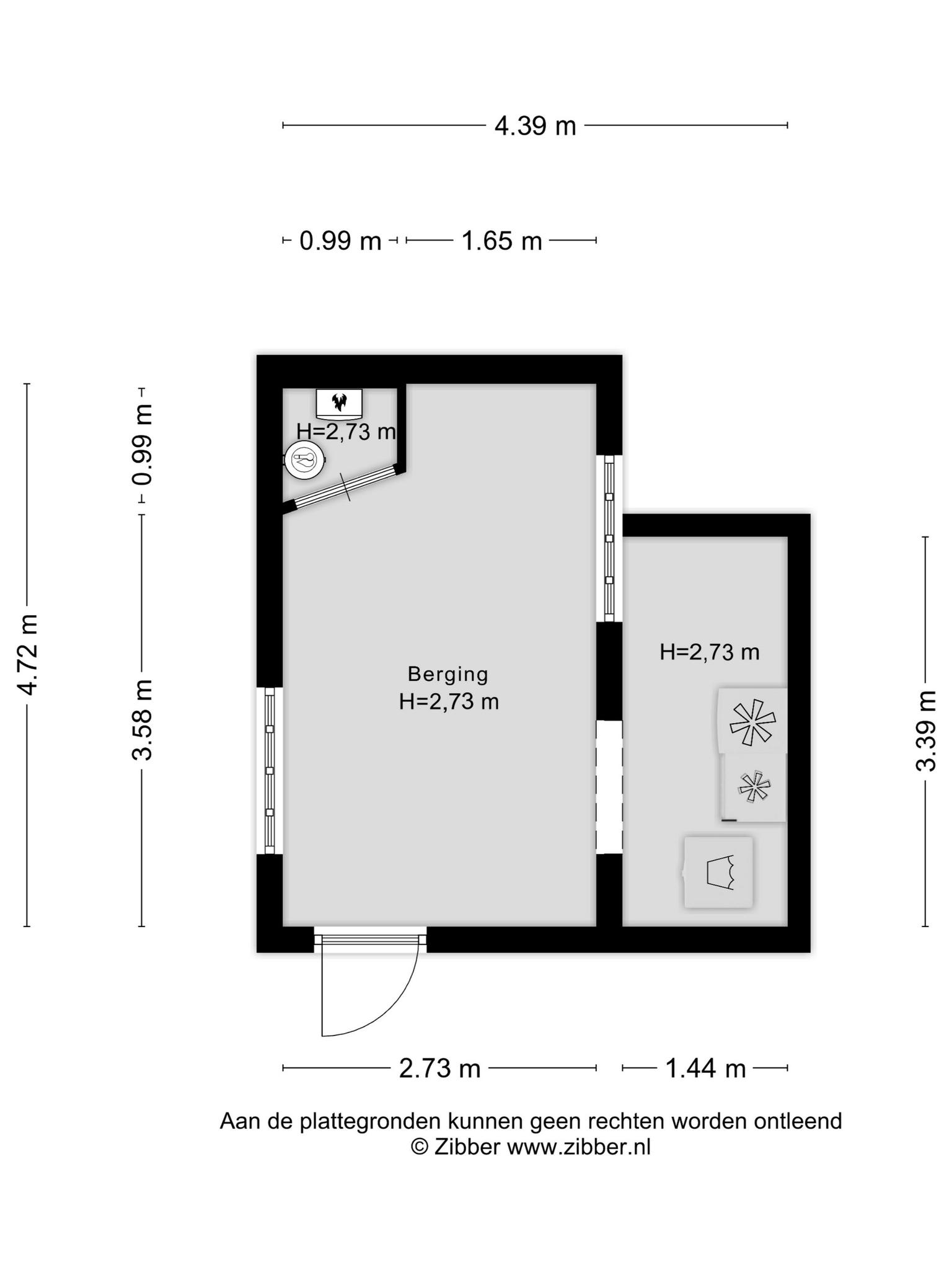Schuin achter de woning staat een stenen berging, die voor een deel als wasruimte en bijkeuken fungeert. Tevens is hier een gasaansluiting aanwezig. Dit bijgebouw is geschikt voor privégebruik, onder andere voor de fietsen.
