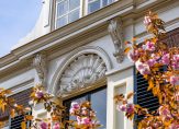 Boven de voordeur bevindt zich een elegant balkon, rustend op zwaar gedecoreerde consoles en afgewerkt met een sierlijk smeedijzeren hekwerk. De woning beschikt over rijk gedetailleerde elementen: sierlijke dakkapellen, donkergekleurde raamluiken en een houten serre met bovengelegen balkon uit circa 1917. Elk detail ademt stijl en geschiedenis.