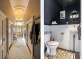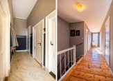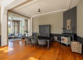 Bij binnenkomst in de hal ervaar je direct de grandeur van het huis: een marmeren vloer, paneeldeuren, een ornamentenplafond en een subtiel aangebracht lichtspel dat door de grote ramen valt. De hal leidt naar een toilet met fonteintje, elegant en stijlvol uitgevoerd.