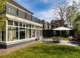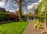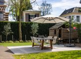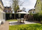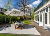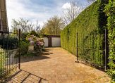 De tuin van Villa Acaciahof is net zo indrukwekkend als de woning zelf. De voortuin is symmetrisch aangelegd met twee Japanse sierkersen, grasvelden en een lage beukenhaag. De royale oprit rechts van de villa biedt ruimte voor vier auto’s en is voorzien van een laadpaal voor elektrische voertuigen.