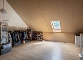 Een vaste trap geeft toegang tot de tweede verdieping, waar een grote ruimte op een nieuwe invulling wacht. De meer dan 3.50 meter hoge nok biedt de mogelijkheid om een vliering te maken, en in plaats van een dakraam kan er een dakkapel aan de achterzijde worden geplaatst. Wordt dit, zoals nu, een berging/wasruimte? Of creëer je hier een vierde slaapkamer, een werkkamer of hobbyruimte? Aan ruimte geen gebrek…