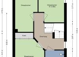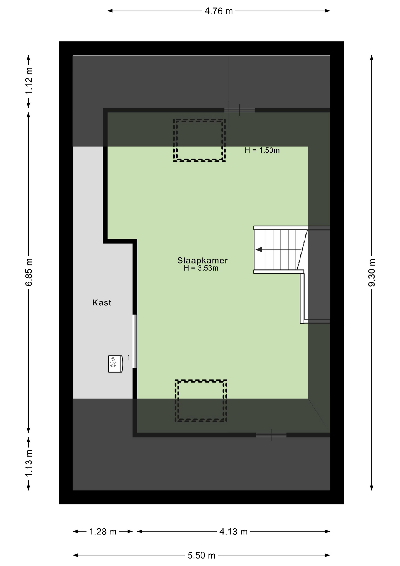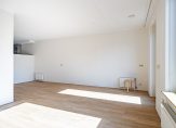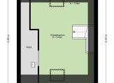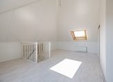 De tweede verdieping is een grote, open ruimte met twee dakramen en een hoge nok. In de schuinten van het dak is veel bergruimte en de positie van de trap, in het midden, biedt de mogelijkheid om twee (slaap)kamers te realiseren.