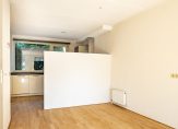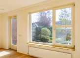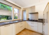 Wat deze woning aantrekkelijk maakt, is de indeling van de keuken en woonkamer. De keuken is aan de voorzijde, het eerste deel van de woonkamer is perfect voor de eettafel en het zitgedeelte heeft een breedte van maar liefst 5.50 meter. Door de grote ramen aan de zuidkant valt veel licht naar binnen en het uitzicht naar de tuin is fraai.