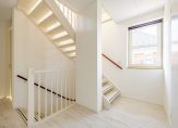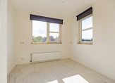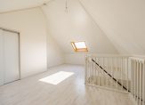 Het raam in de zijgevel zorgt voor veel lichtinval op de ruime overloop, waar de vaste trap naar de tweede verdieping is. De lichte laminaatvloer ligt niet alleen hier, maar ook in de slaapkamers. Er zijn twee slaapkamers aan de achterzijde en de derde slaapkamer, met een grote inbouwkast, is aan de voorzijde.