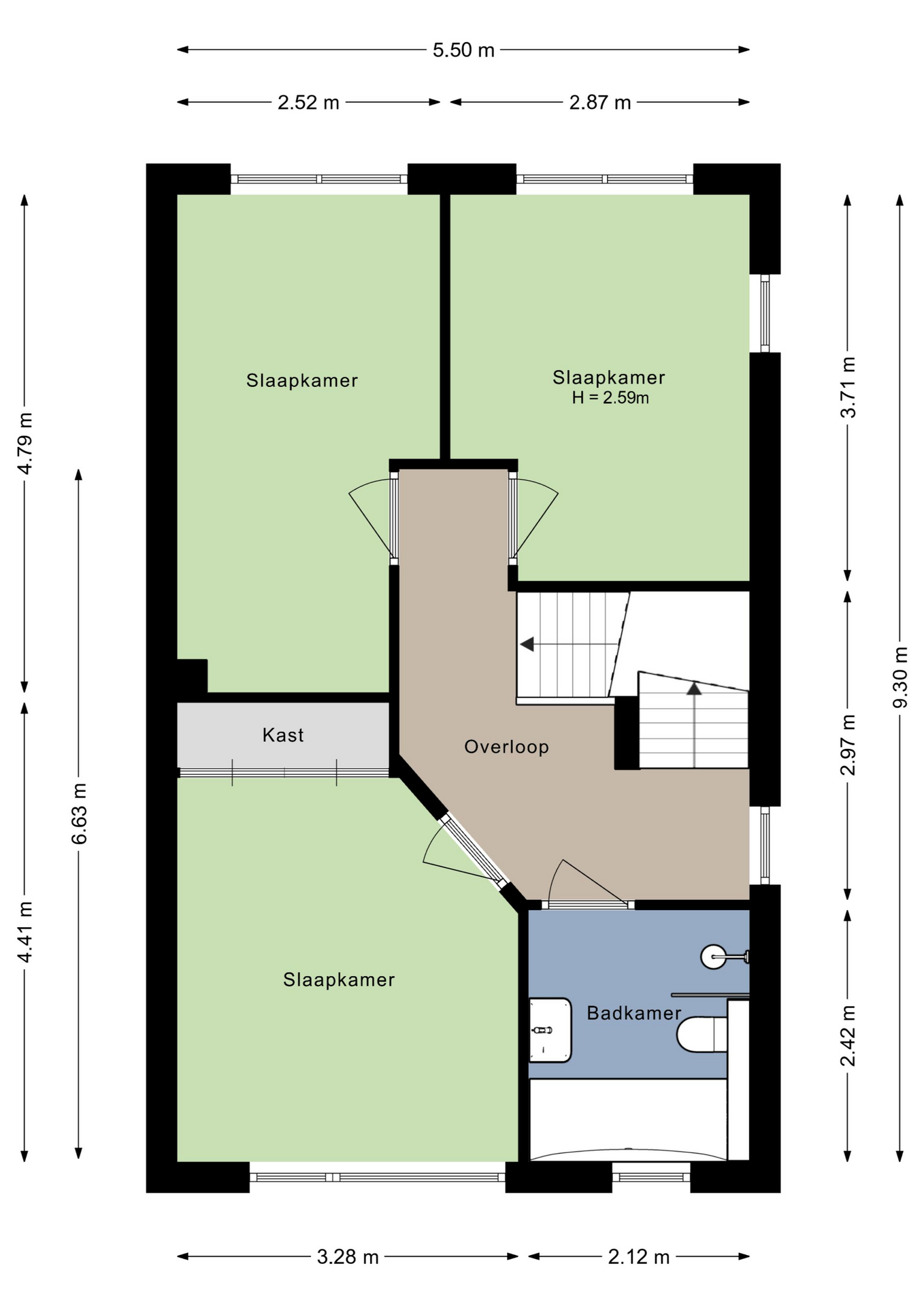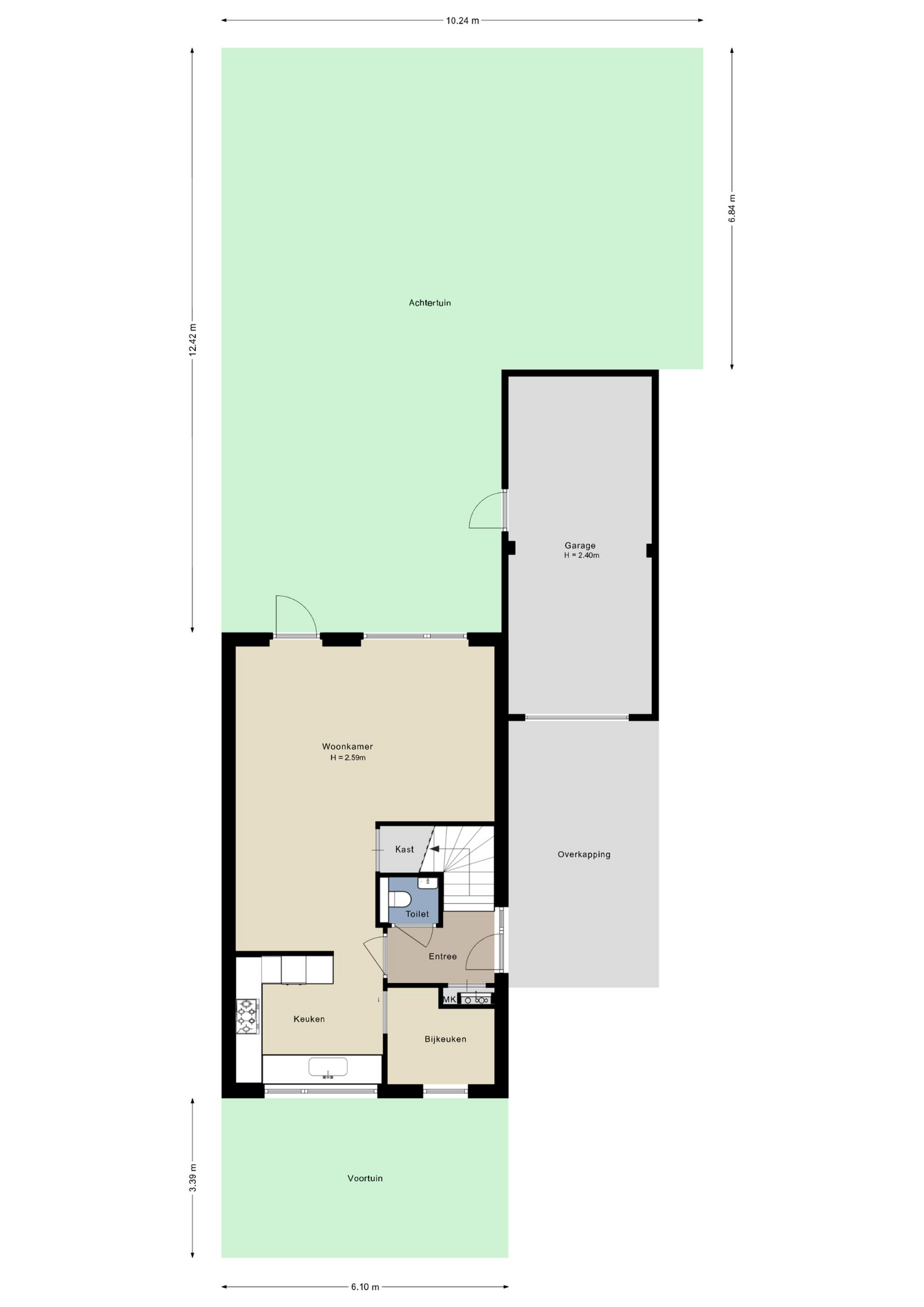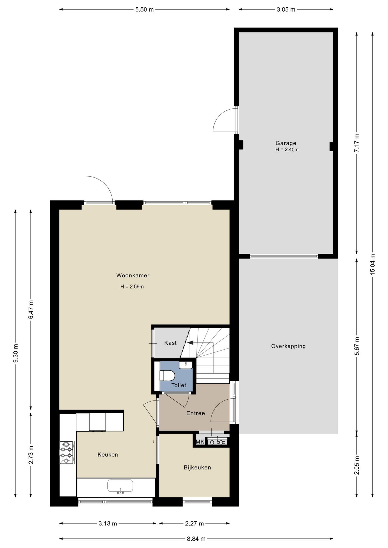 – Vaste trap naar de tweede verdieping (mogelijkheid voor twee slaapkamers);