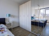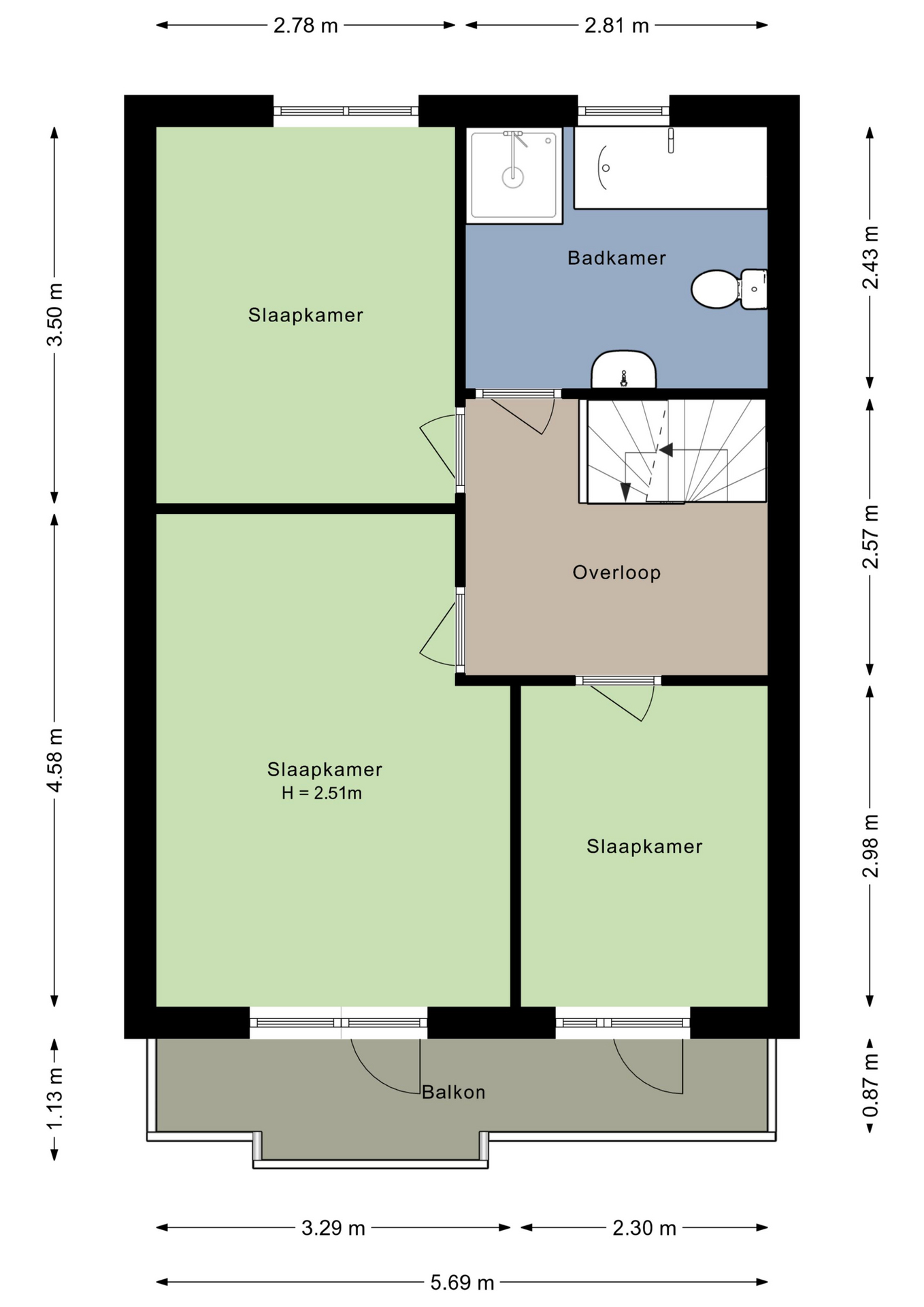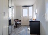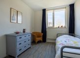 Wat boven als eerste opvalt, is de ruime overloop. Vanaf hier zijn drie slaapkamers en de badkamer te bereiken, die allemaal van goed formaat zijn. Aan de voorzijde zijn twee slaapkamers, beiden met een deur naar het balkon. Ook de slaapkamer aan de achterzijde is groot genoeg om in te richten met een tweepersoonsbed.