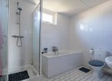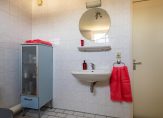 De badkamer, met een raam in de achtergevel, is ingedeeld met een ligbad, aparte douche, tweede toilet en een wastafel. Kies je ervoor om te gaan moderniseren, dan is er nog genoeg ruimte om een tweede wastafel te plaatsen.