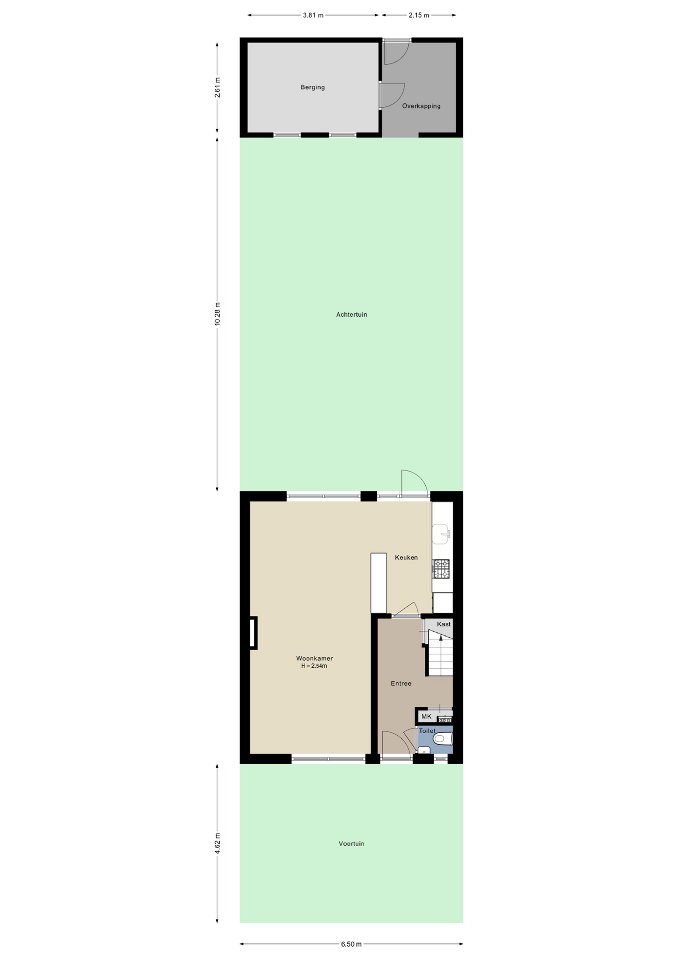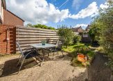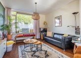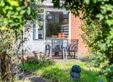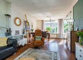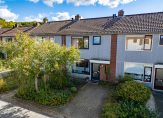 Via de keukendeur loop je naar het zonnige terras in de diepe achtertuin, die op het zonnige zuiden gesitueerd is. Vanaf het terras kijk je naar het gazon en de beplanting, met kleurrijke bloemen in verschillende kleuren. Naast de (fietsen)berging is een overkapping gebouwd, met een poort naar de steeg. Ook in de voortuin zie je veel groen, naast de oprit. Dit zorgt voor een huis met een mooie uitstraling!
