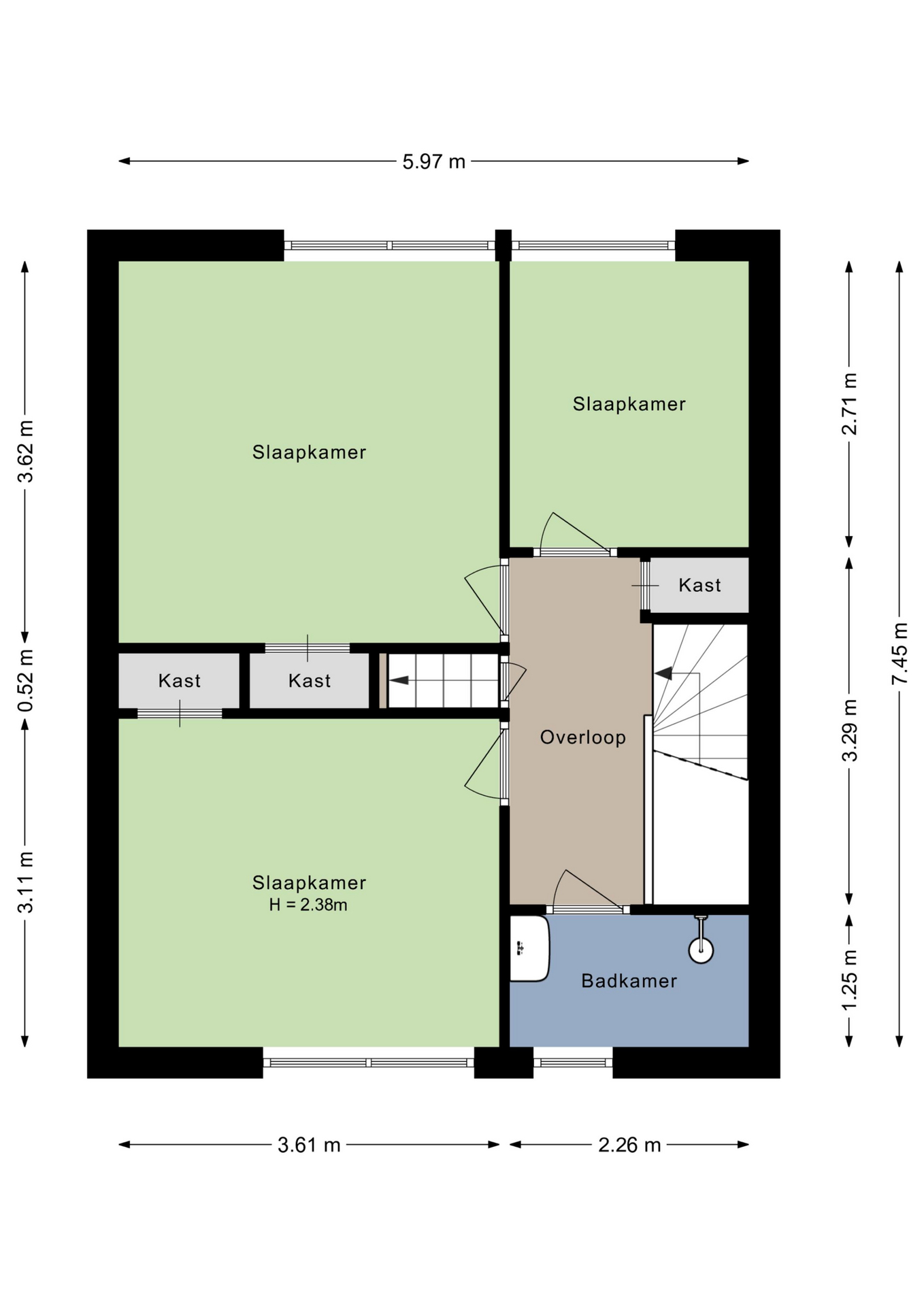 Aan de achterzijde zijn twee slaapkamers, waarvan een is ingericht als master bedroom. De naastgelegen kamer is een prima kinderkamer of werkkamer en de slaapkamer aan de voorzijde is groot genoeg om in te richten met een tweepersoonsbed. Erg handig zijn de inbouwkasten, in totaal zijn er drie op deze verdieping.