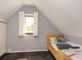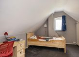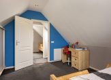 Kies je ervoor om boven te slapen, dan heb je keuze uit vier slaapkamers. Via de trap in de hal loop je naar de slaapkamers in het voorhuis, die grenzen aan een overloop met wastafel. Diepe (garderobe)kasten in de schuinte van het dak bieden volop ruimte aan kleding, schoenen en andere spullen.