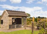 Op het perceel staan twee bijgebouwen. Het eerste bijgebouw is het (t)huis van de kippen, vlak naast de oprit. Op het achterste deel van het perceel staat een grote schuur, die nu deels als paardenstal in gebruik is. De deuren van de grote schuur zijn voorzien van massief bamboe hout. De hoge sectionaalpoort is perfect voor de autoliefhebber en om een paardentrailer of caravan binnen te zetten. Via een vaste trap is de bergzolder te bereiken. Ook is bij de bouw van de schuur rekening gehouden met verduurzaming. De installatie voor het plaatsen van zonnepanelen is gedeeltelijk voorbereid. Er is een voldoende zware kabel aangelegd tussen het bijgebouw en het woonhuis om m.b.v. zonnepanelen op het bijgebouw het woonhuis te kunnen verduurzamen.