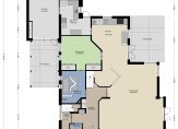 Het oppervlak van woonkamer en keuken, samen het leefgedeelte, is ruim 90 m2. De gehele benedenverdieping, uitgezonderd de garage, is voorzien van vloerverwarming,