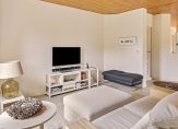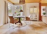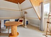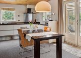 De woonkamer is een zeer royale en speels ingedeelde leefruimte met fraai uitzicht naar de tuin en openslaande deuren naar een terras. Het zitgedeelte bevindt zich aan de voorzijde en het eetgedeelte grenst aan de open keuken. Sfeermakers in de woonkamer zijn de ingebouwde Wodtke tegelkachel en een werkplek met doorkijkjes naar de woonkamer. De houtgestookte tegelkachel heeft zitjes, waar u volop geniet van de aangename warmte van de kachel.