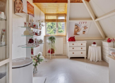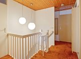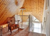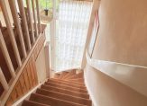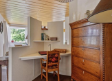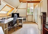 U kunt daar ook komen via de tweede trap, vanuit de ruime hal bij de hoofdentree. De slaapkamers en badkamer zijn toegankelijk vanaf een ruime overloop. Aan de rechterzijde daarvan is een slaapkamer ingericht als werkkamer, en aan de achterzijde zijn de andere slaapkamers. De tweede badkamer is ingedeeld met een inloopdouche, wastafel en een wandcloset.